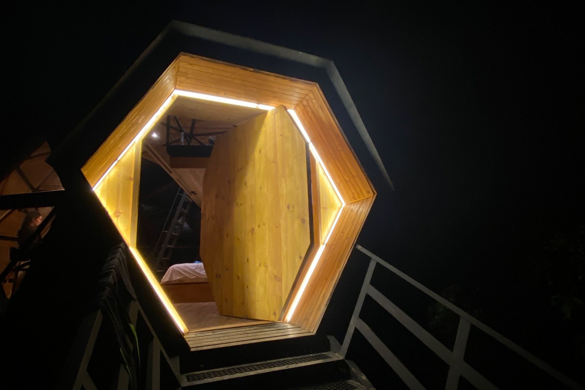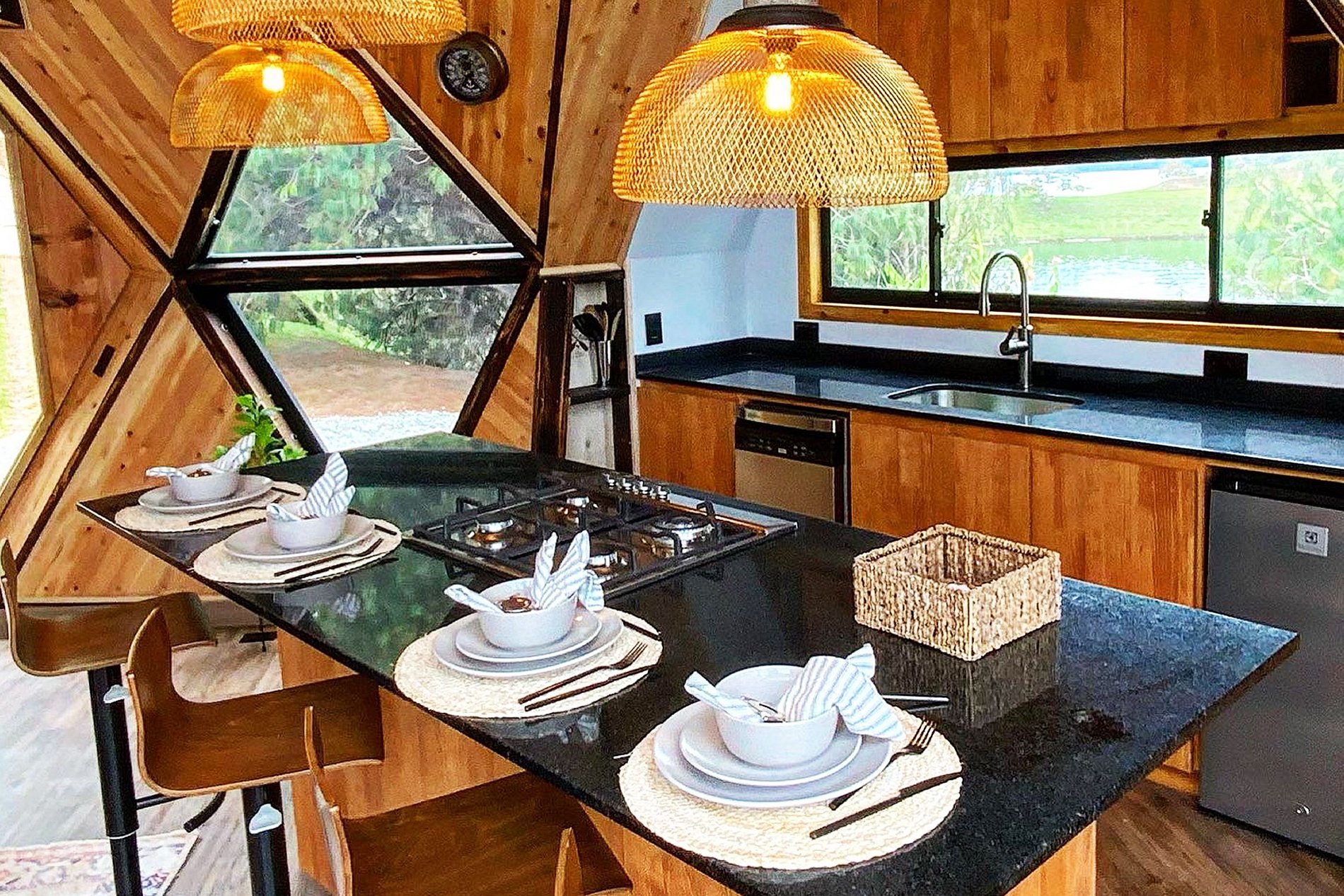 Le dôme en bois de 56 m² est réparti sur deux étages, avec un lit queen size à chaque étage, pouvant accueillir jusqu'à quatre personnes. C'est l'endroit idéal pour ceux qui recherchent une expérience d'hébergement unique, alliant luxe et nature dans un cadre serein et accueillant. Profitez de toutes les commodités modernes tout en vous imprégnant de la beauté de ce paysage, à une courte distance de Medellín.