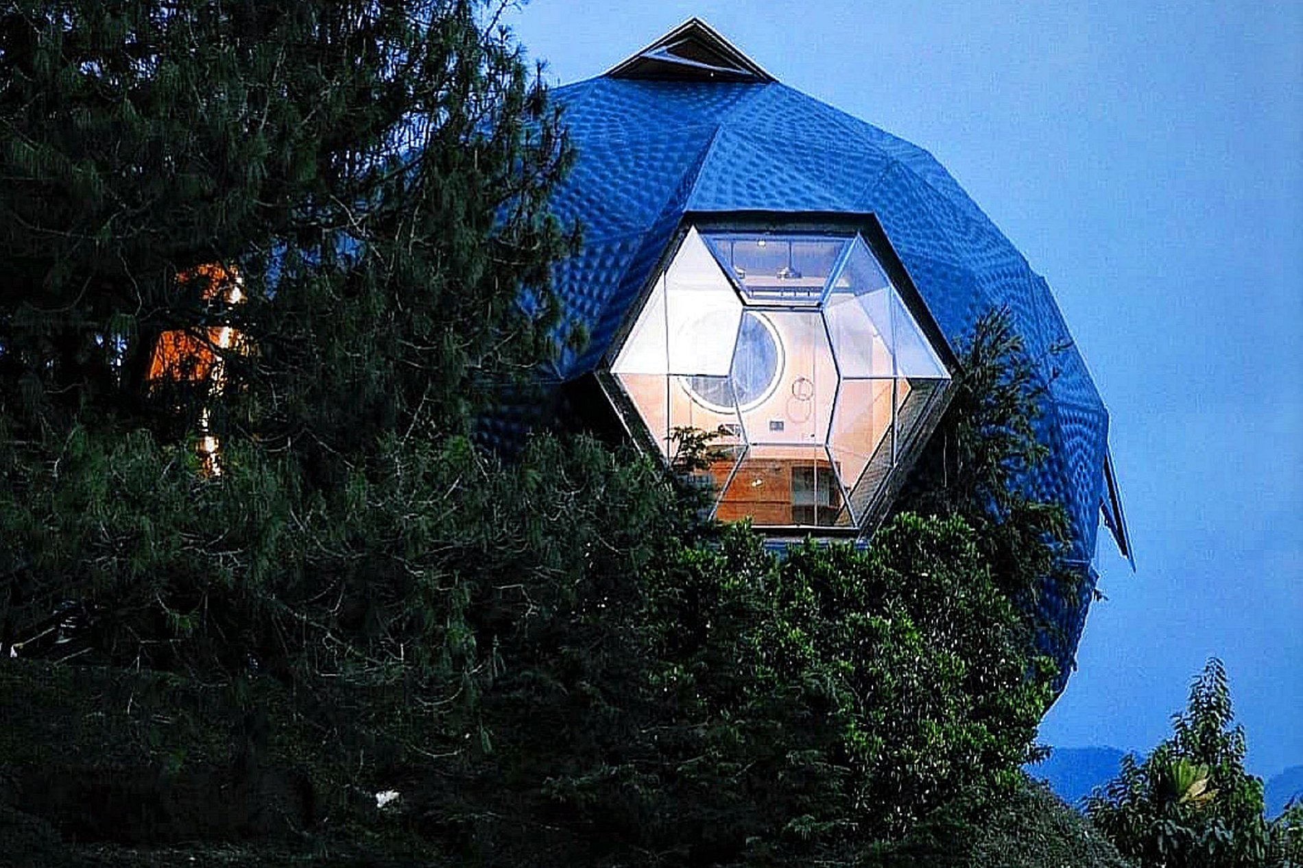 Le dôme en bois de 56 m² est réparti sur deux étages, avec un lit queen size à chaque étage, pouvant accueillir jusqu'à quatre personnes. C'est l'endroit idéal pour ceux qui recherchent une expérience d'hébergement unique, alliant luxe et nature dans un cadre serein et accueillant. Profitez de toutes les commodités modernes tout en vous imprégnant de la beauté de ce paysage, à une courte distance de Medellín.