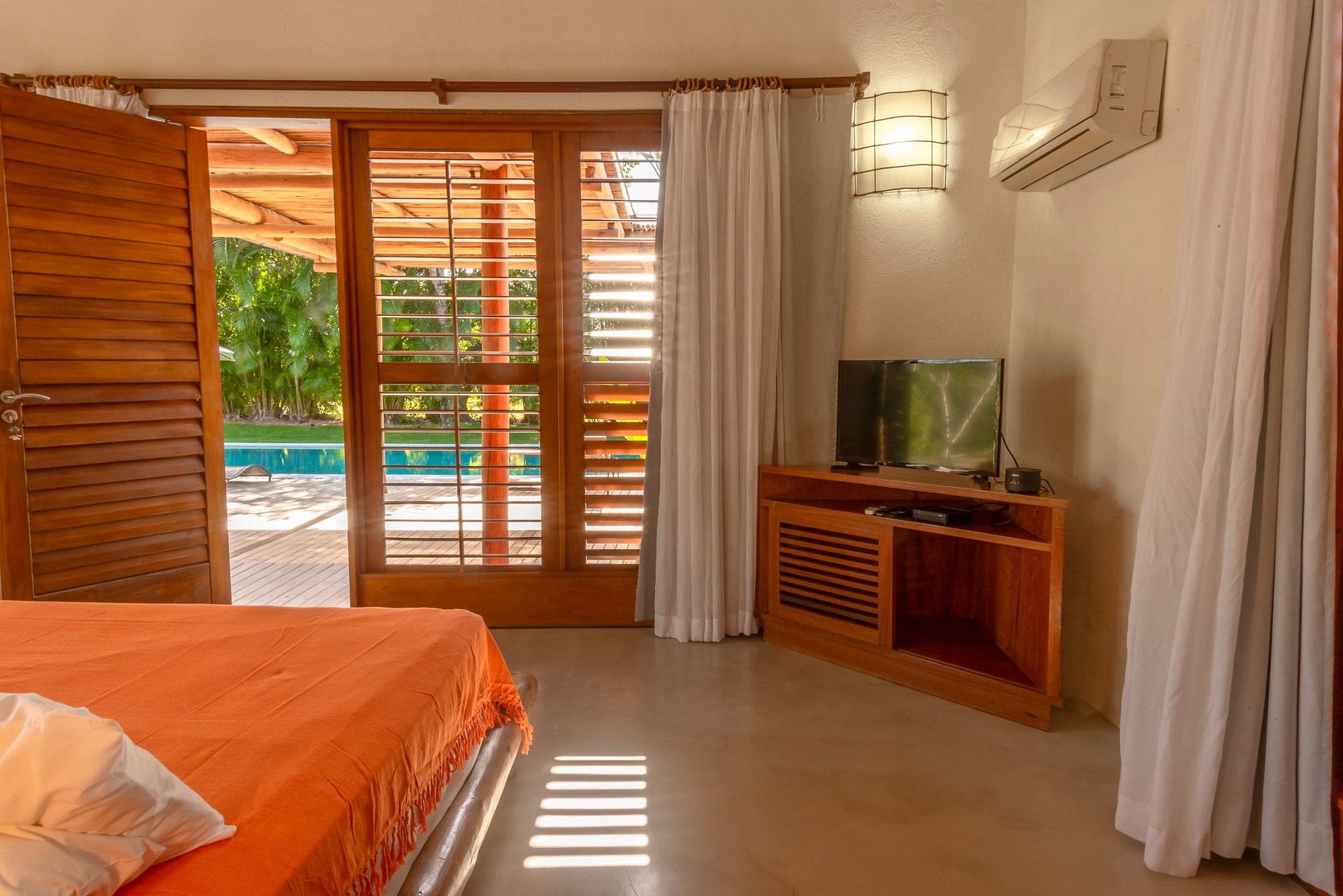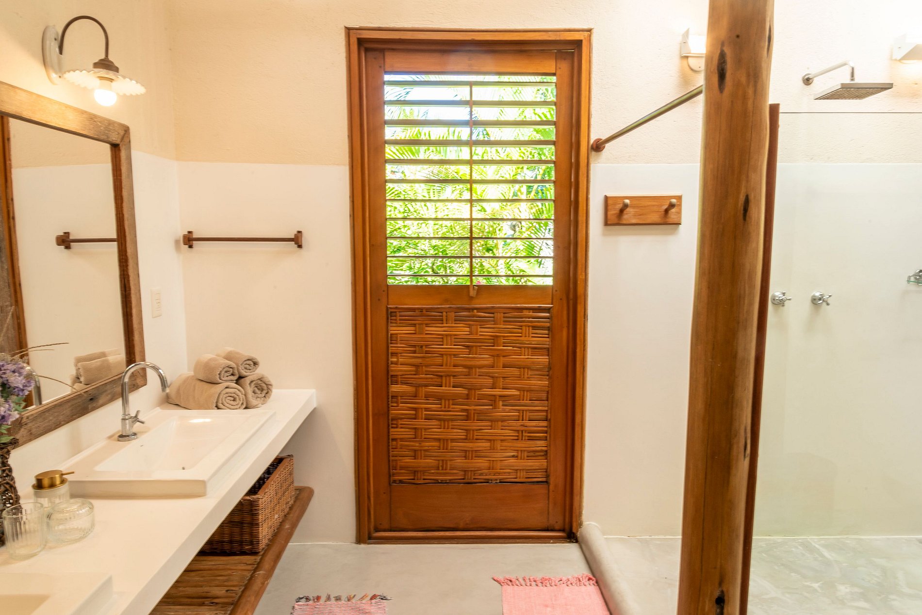 2 suites avec lit King-size, 1 avec lit Queen et 2 avec deux lits de chacun, offrant beaucoup d’espace pour les grandes familles et les amis qui veulent profiter des meilleurs moments à Trancoso.
