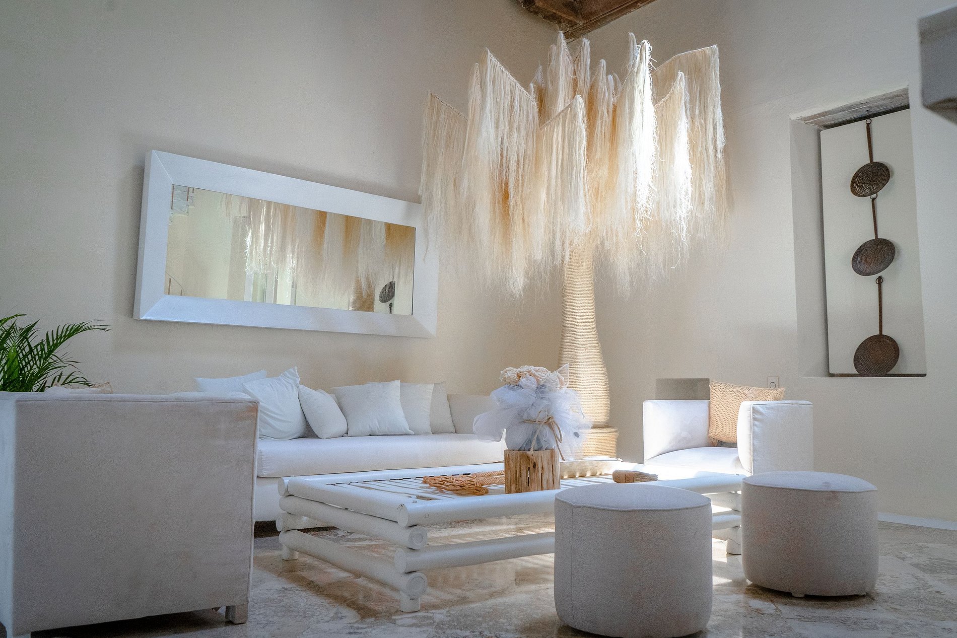 A l'intérieur, le lieu présente plusieurs environnements tels que: halls, 3 cuisines entièrement équipées et salles à manger. Aussi 3 belles terrasses avec piscine, spa, turc et sauna pour passer un moment unique avec la famille et les amis, tous les domaines de la maison ont WiFi. Cette maison comprend chaque jour un hôte, un chef, un service de ménage et un concierge.