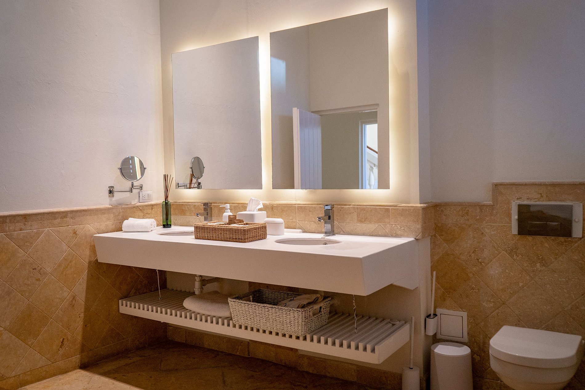 11 chambres réparties en 3 espaces indépendants, chacune d’entre elles est entièrement équipée avec salle de bain privée, télévision ultra HD avec connexion Internet et vue sur le jardin intérieur de la maison, la piscine ou la ville.
