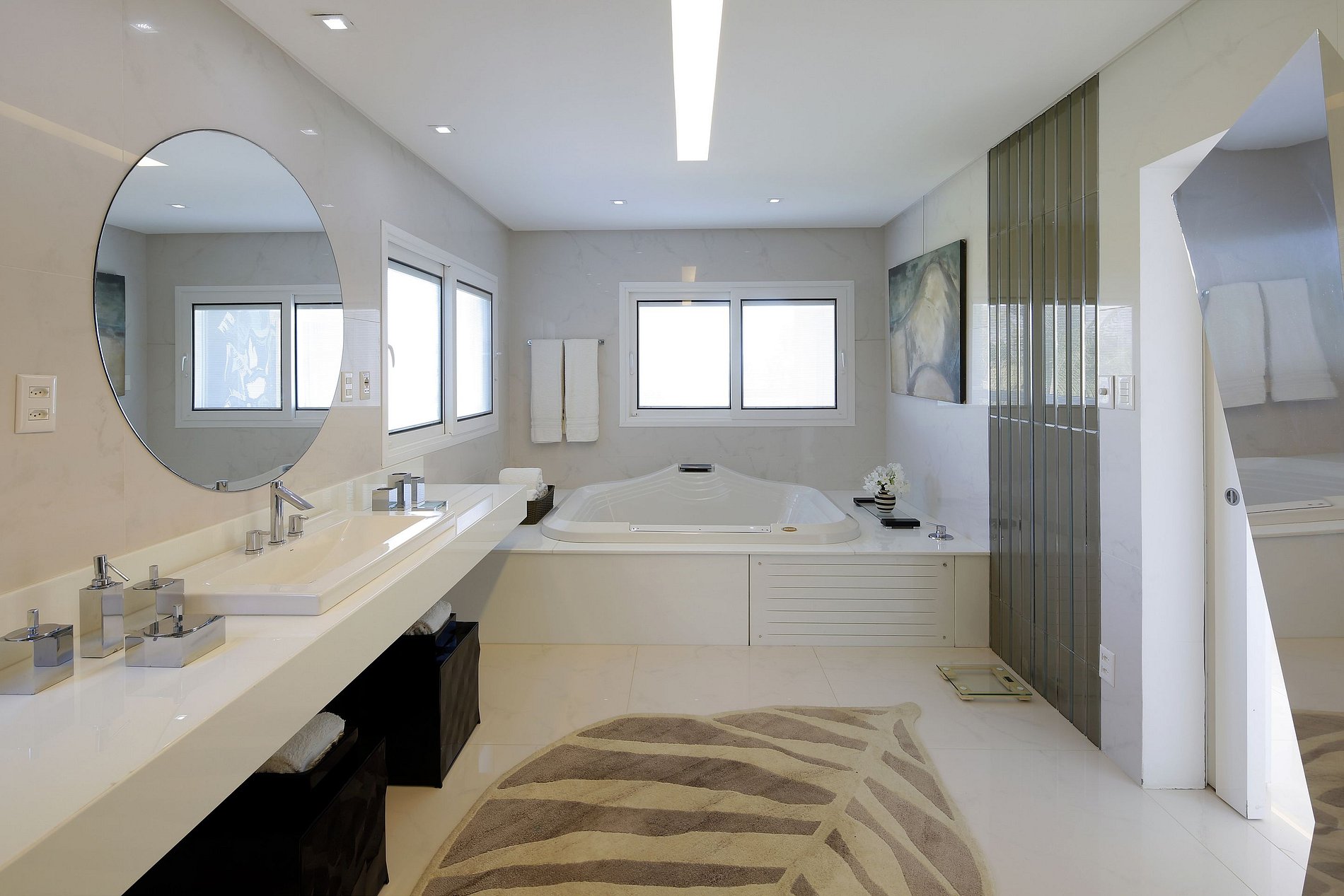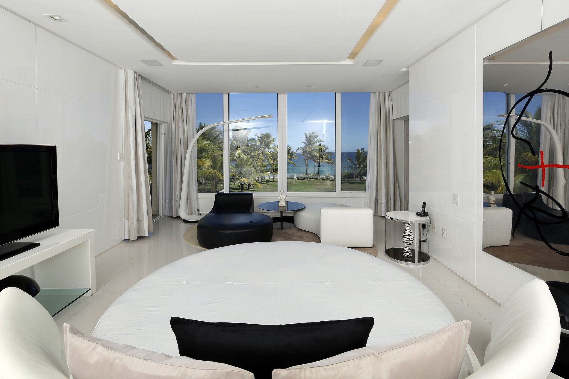 Le grand espace social est constitué d´un grand salon avec de amples et lumineux espaces ouverts et un plafond très haut, d´une salle à manger avec climatisation, le tout se connectant dans l´agréble varanda de verre let sa grande terrasse avec piscine et vue mer.