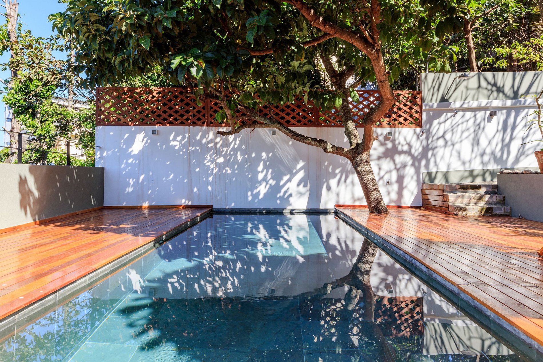 L'espace extérieur est un véritable refuge, avec une piscine entourée d'une terrasse en bois, à l'ombre d'un grand arbre, permettant de profiter de moments de tranquillité tout en contemplant le paysage. Le jardin, juste au-dessus de la piscine, avec sa pelouse verdoyante et bien entretenue, est parfait pour des moments de loisirs en plein air, complété par un barbecue idéal pour réunir amis et famille.