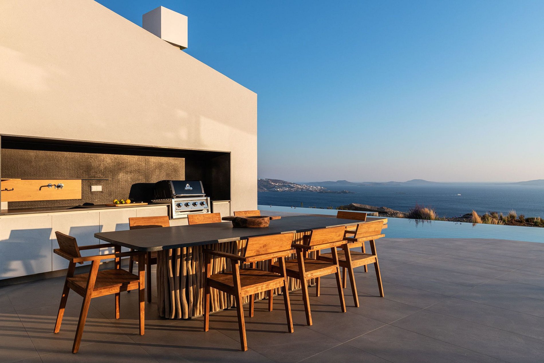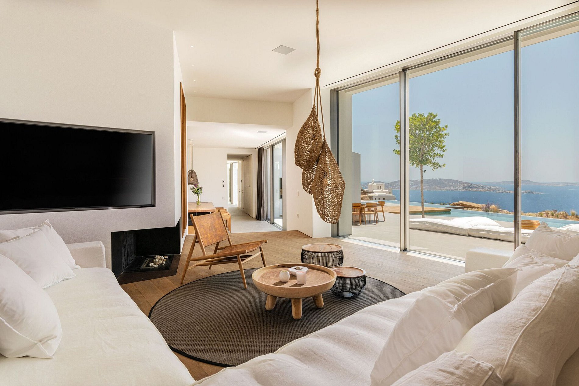 Chaque chambre de la propriété fait face à l'ouest de la mer Égée et bénéficie d'une vue imprenable sur le coucher de soleil sur la mer. La villa est composée de la maison principale et de la maison d'hôtes et dispose de 5 chambres plus 1 chambre supplémentaire et 8 salles de bains. La superbe terrasse extérieure spacieuse d'environ 500 m2 comprend une piscine à débordement privée qui surplombe la mer Égée, la salle à manger et le barbecue, le home cinéma extérieur et plusieurs salons.