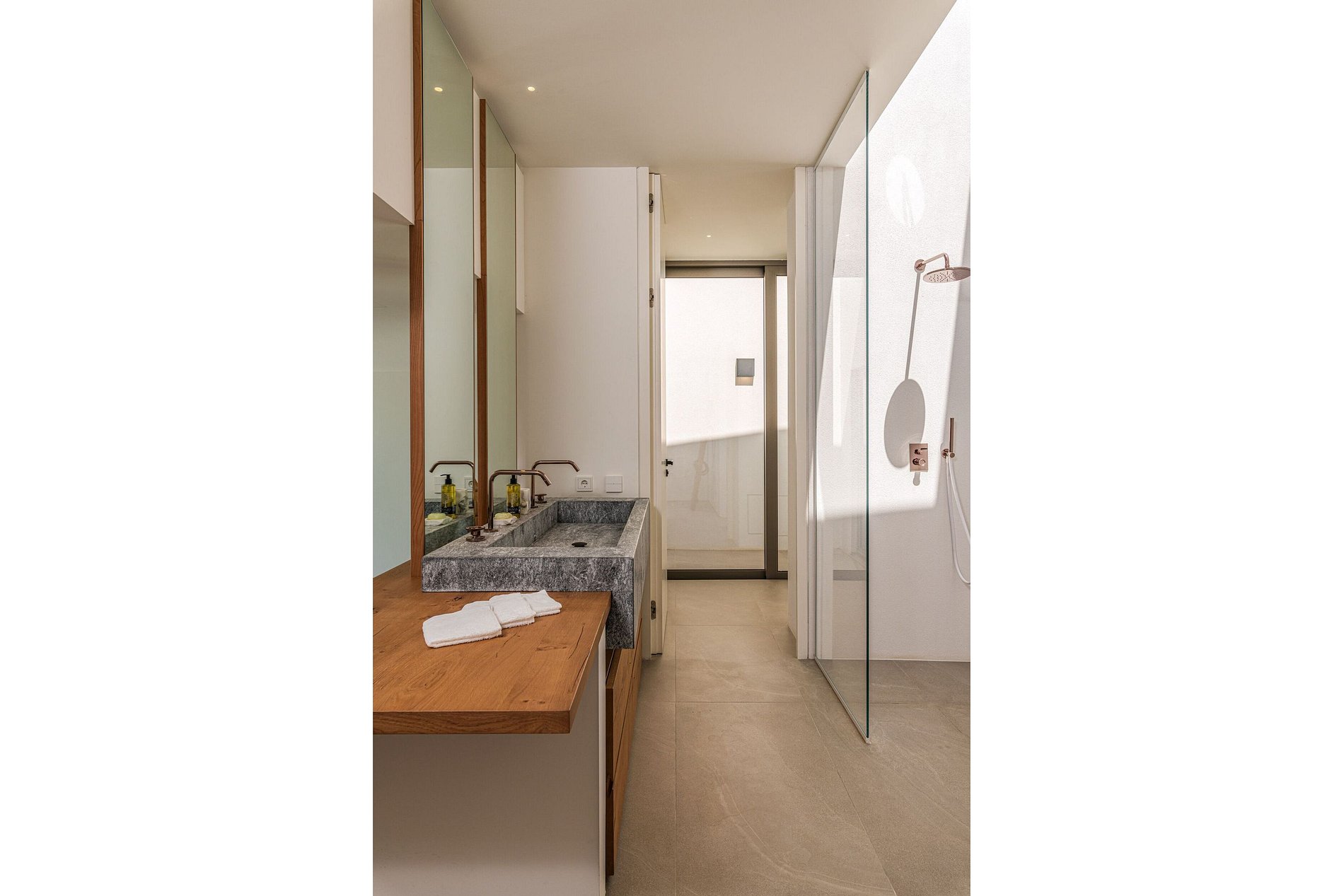 Chaque chambre de la propriété fait face à l'ouest de la mer Égée et bénéficie d'une vue imprenable sur le coucher de soleil sur la mer. La villa est composée de la maison principale et de la maison d'hôtes et dispose de 5 chambres plus 1 chambre supplémentaire et 8 salles de bains. La superbe terrasse extérieure spacieuse d'environ 500 m2 comprend une piscine à débordement privée qui surplombe la mer Égée, la salle à manger et le barbecue, le home cinéma extérieur et plusieurs salons.