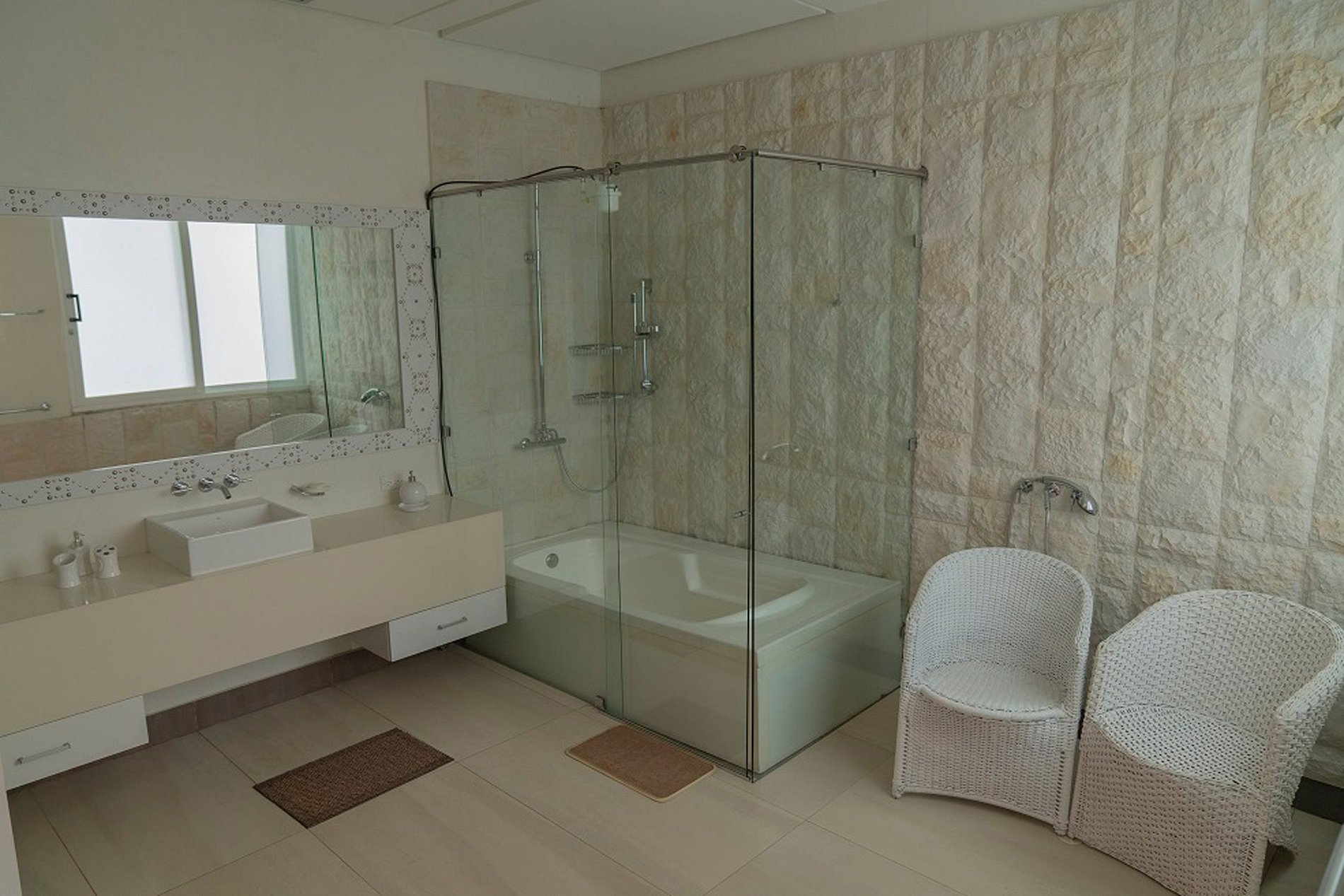 C'est un endroit privé et sûr avec un mobilier et une décoration de haute qualité. Il dispose de 5 chambres toutes avec salle de bain privée, salle de télévision, salle à manger principale et auxiliaire, piscine, gymnase, barbecue, télévision et circuit turc (une heure par jour), jacuzzi.
