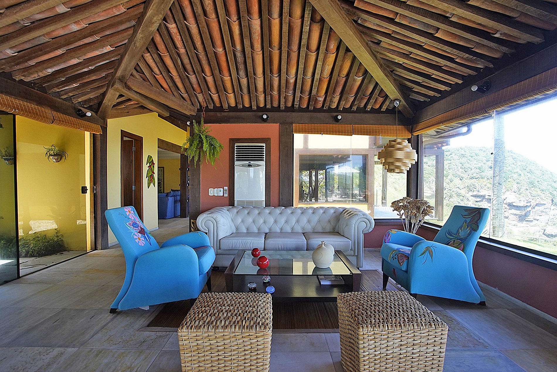 La villa a été décorée dans un style brésilien, coloré, avec des détails traditionnels et un confort moderne par Emery de Lima Fata. La plupart des murs de la villa sont en verre. Où que vous soyez, vous pouvez voir la mer.