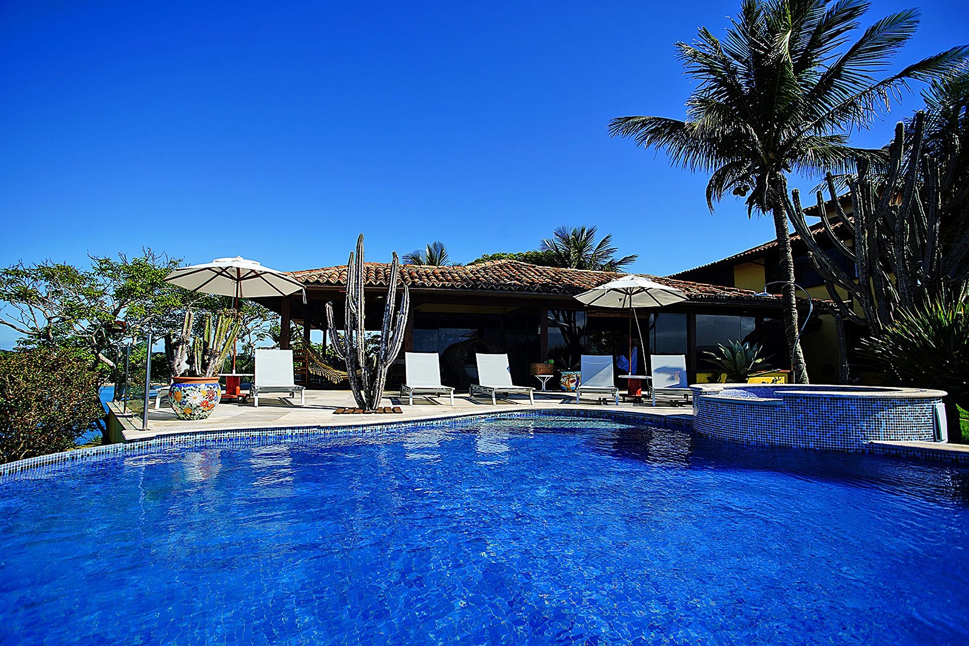 Cette magnifique villa construite par le célèbre architecte brésilien Otavio Raja Gabaglia sur une falaise afin que chacun puisse profiter des vues les plus extraordinaires et les plus époustouflantes sur l'océan. Chaque suite est individuelle et dispose d'une terrasse privée où vous pourrez profiter de la beauté de la mer.
