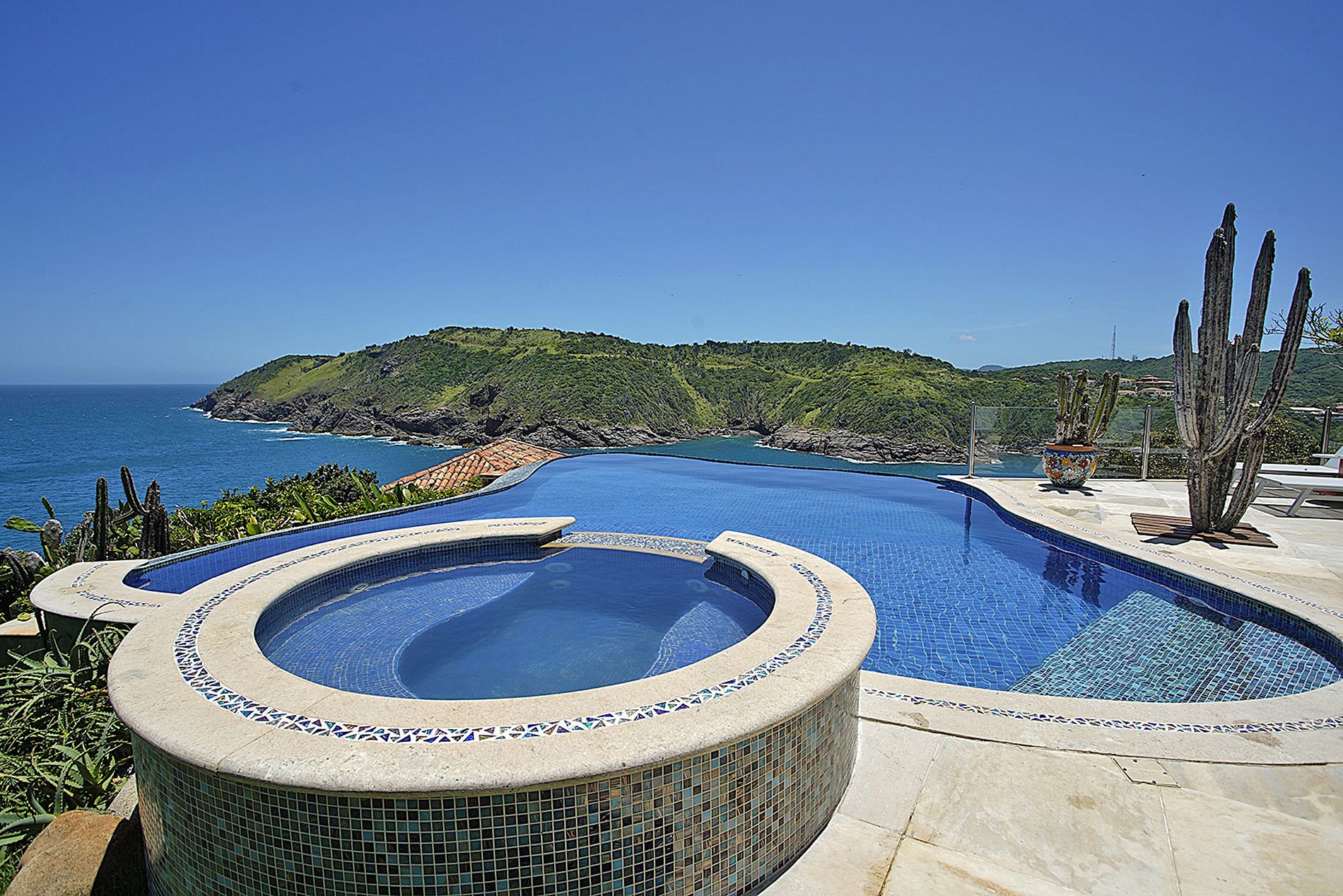 Cette magnifique villa construite par le célèbre architecte brésilien Otavio Raja Gabaglia sur une falaise afin que chacun puisse profiter des vues les plus extraordinaires et les plus époustouflantes sur l'océan. Chaque suite est individuelle et dispose d'une terrasse privée où vous pourrez profiter de la beauté de la mer.