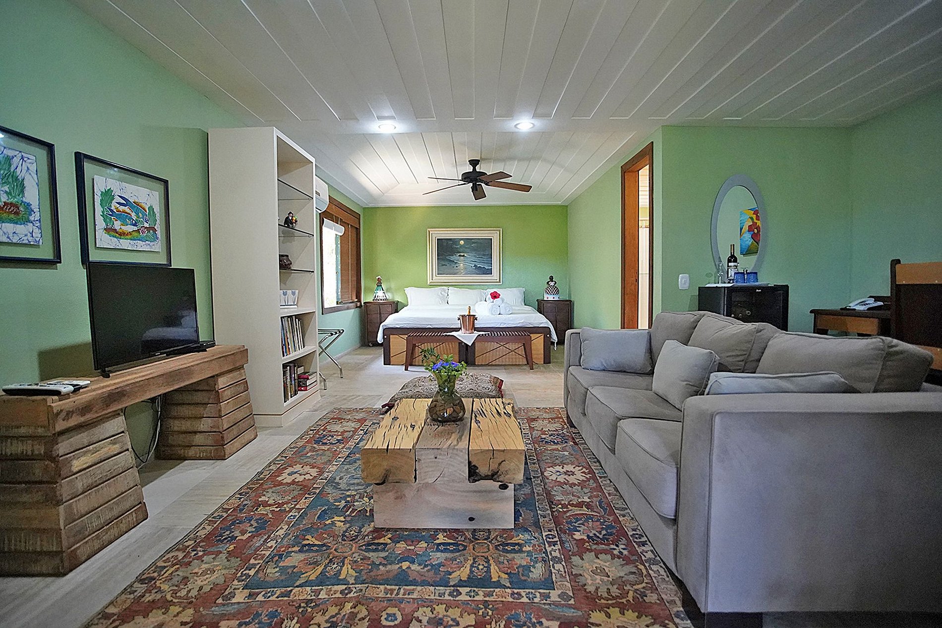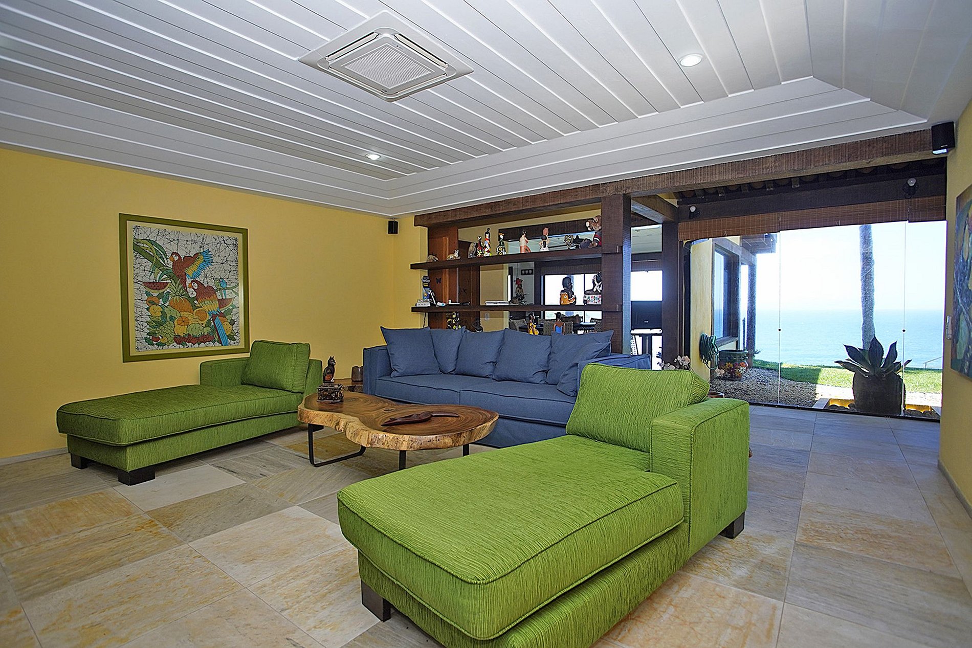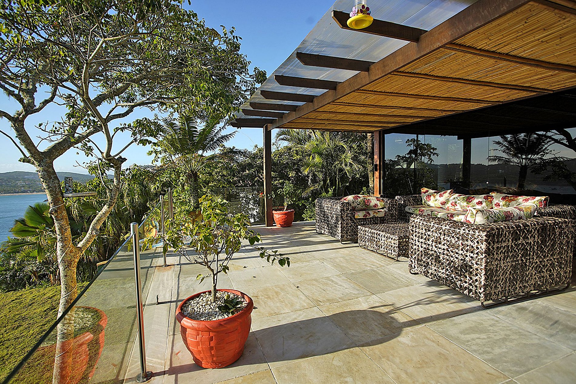 La villa a été décorée dans un style brésilien, coloré, avec des détails traditionnels et un confort moderne par Emery de Lima Fata. La plupart des murs de la villa sont en verre. Où que vous soyez, vous pouvez voir la mer.