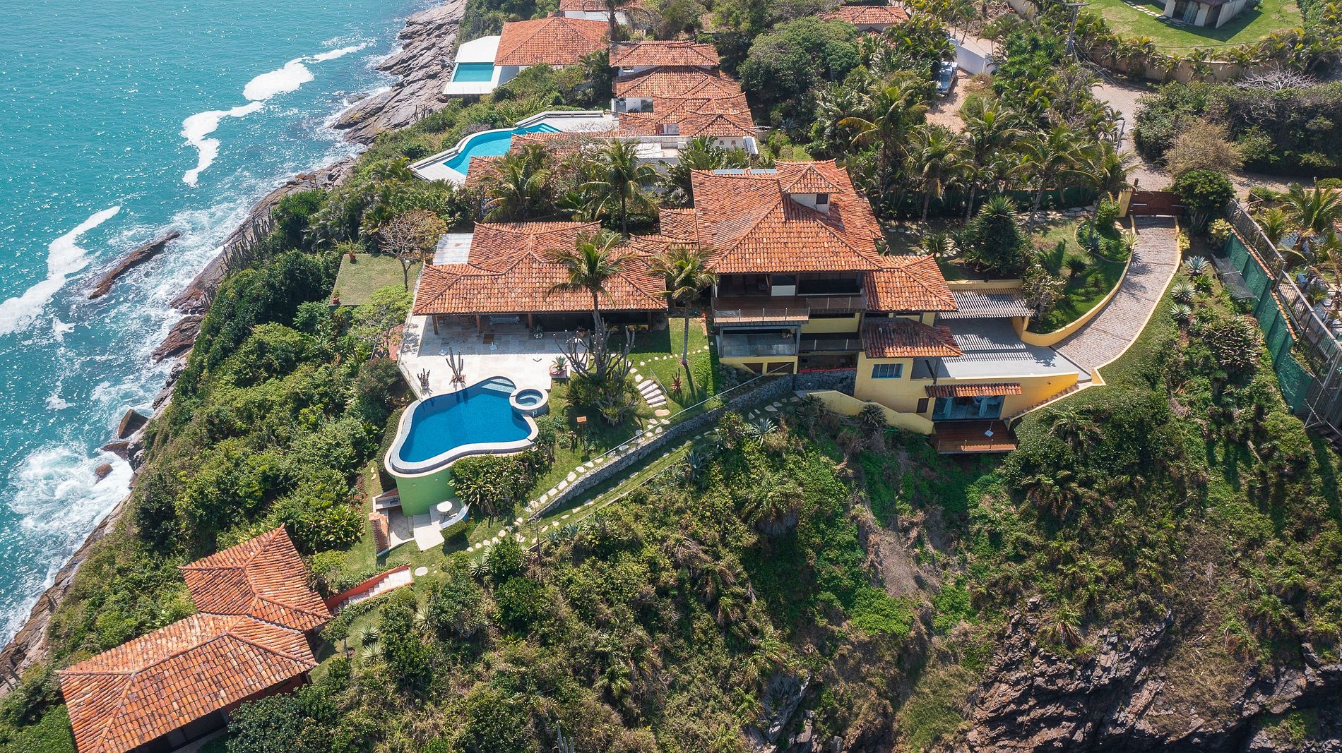 Cette magnifique villa construite par le célèbre architecte brésilien Otavio Raja Gabaglia sur une falaise afin que chacun puisse profiter des vues les plus extraordinaires et les plus époustouflantes sur l'océan. Chaque suite est individuelle et dispose d'une terrasse privée où vous pourrez profiter de la beauté de la mer.