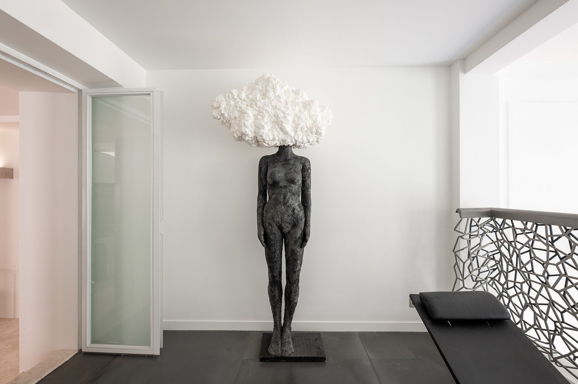 Ce magnifique bien, s'étendant sur trois niveaux, est un véritable hommage à l'esthétique unique de Lagerfeld, alliant des boiseries exclusives et des accents métalliques raffinés qui capturent l'essence de son style.