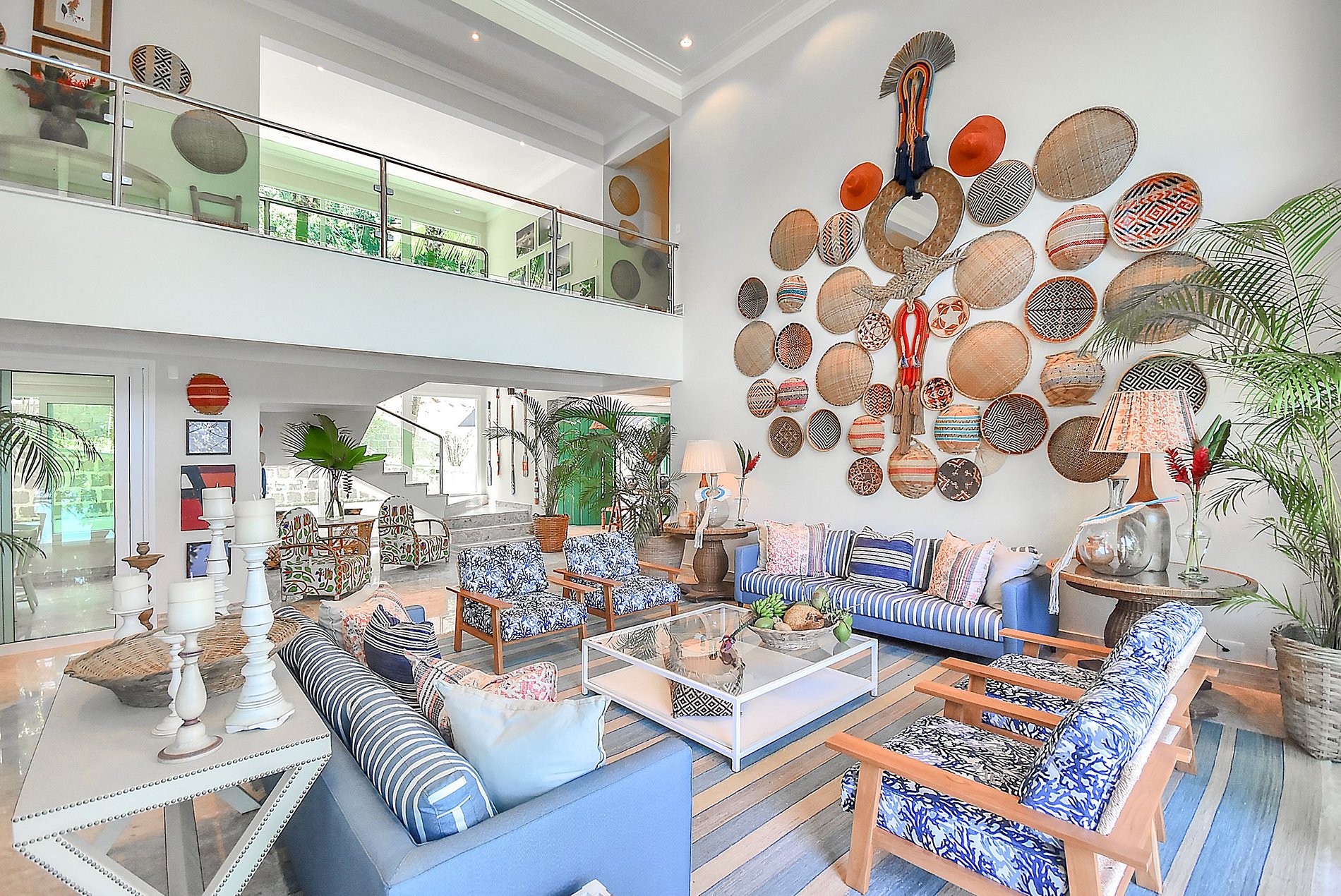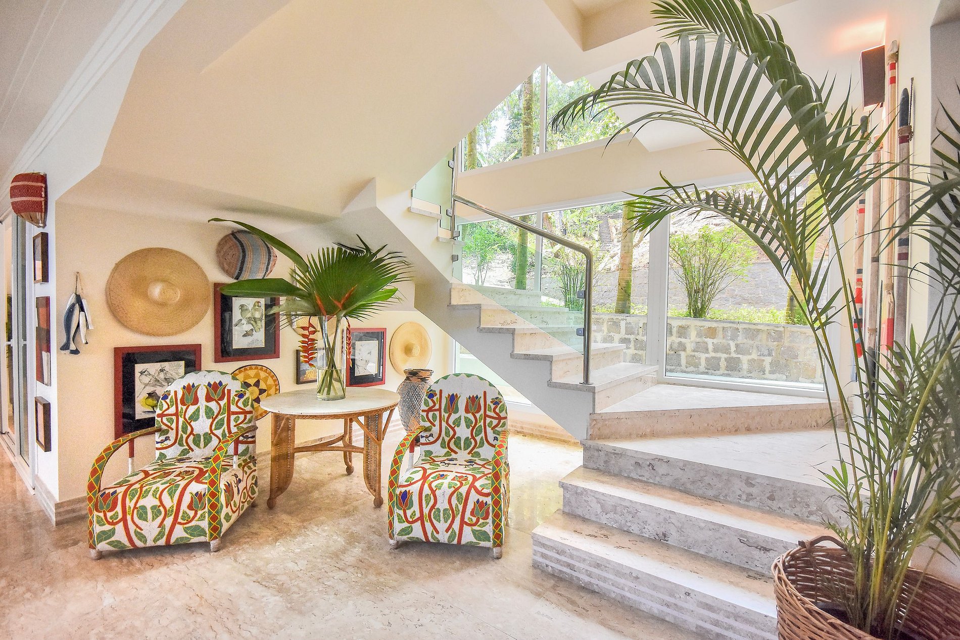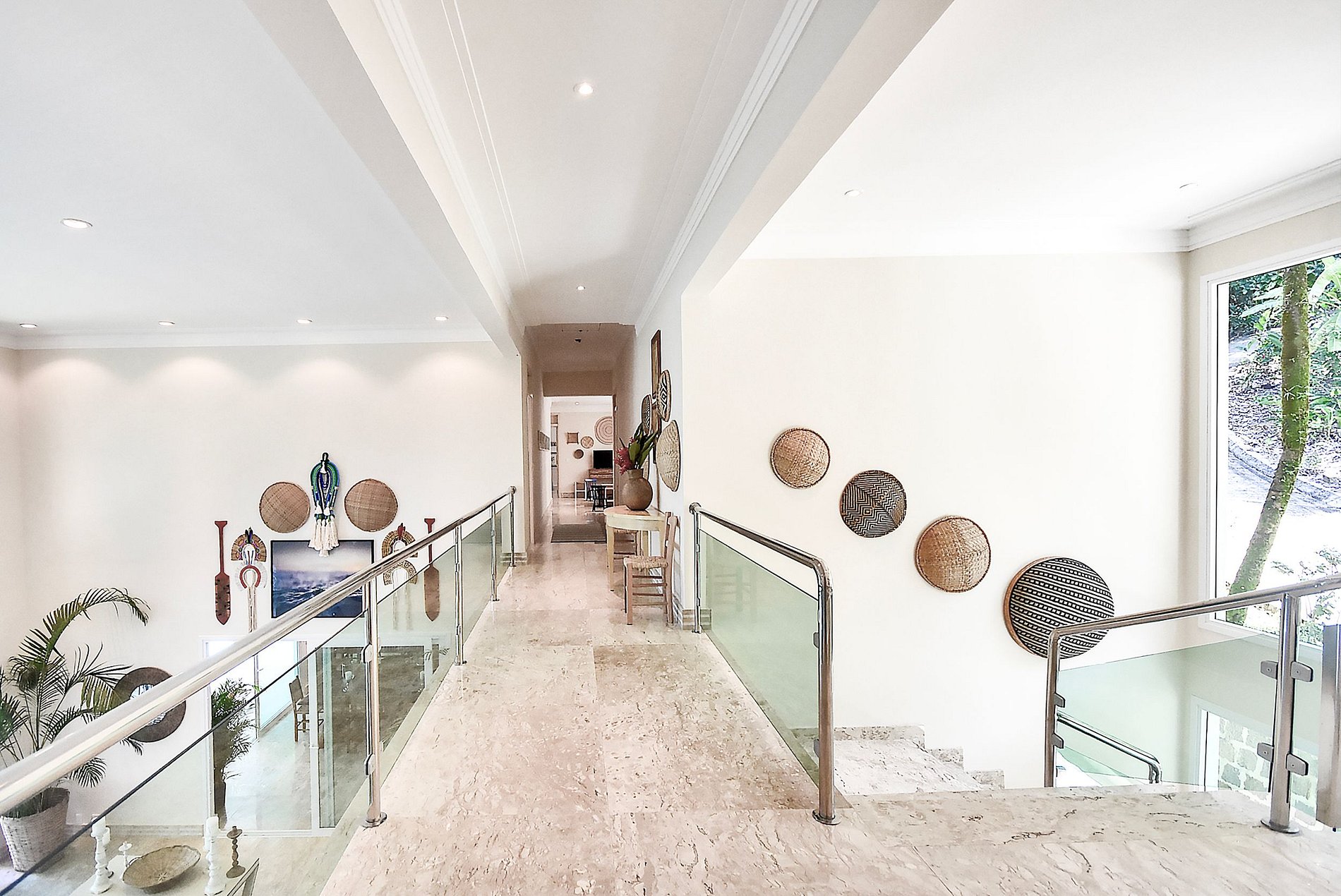 La villa dispose d'un beau et spacieux salon avec des décorations de beaux ornements artisanaux de la région qui sont également insérés dans chaque pièce de la villa. En haut des escaliers, il y a un espace pour enfants avec une télévision et les belles suites de la villa, au total il y a 6 chambres, 4 d'entre elles ont un lit double, une chambre avec deux lits simples et un lit bébé, et la dernière avec 3 lits célibataires, certains d'entre eux ont un balcon avec une belle vue qui contemple les beaux paysages du ciel et de la mer d'Angra, d'autres avec une vue sur le paysage forestier pour ceux qui aiment se réveiller et voir les feuilles d'un vert vif et magnifique palmiers qui ornent l'entrée de la villa.