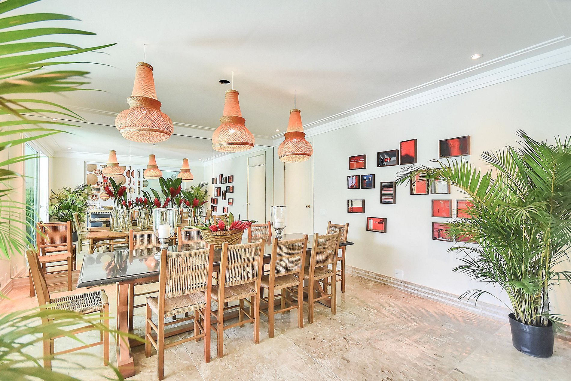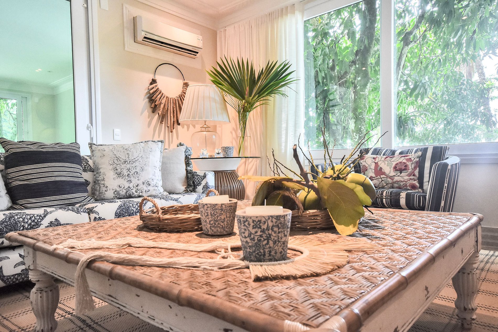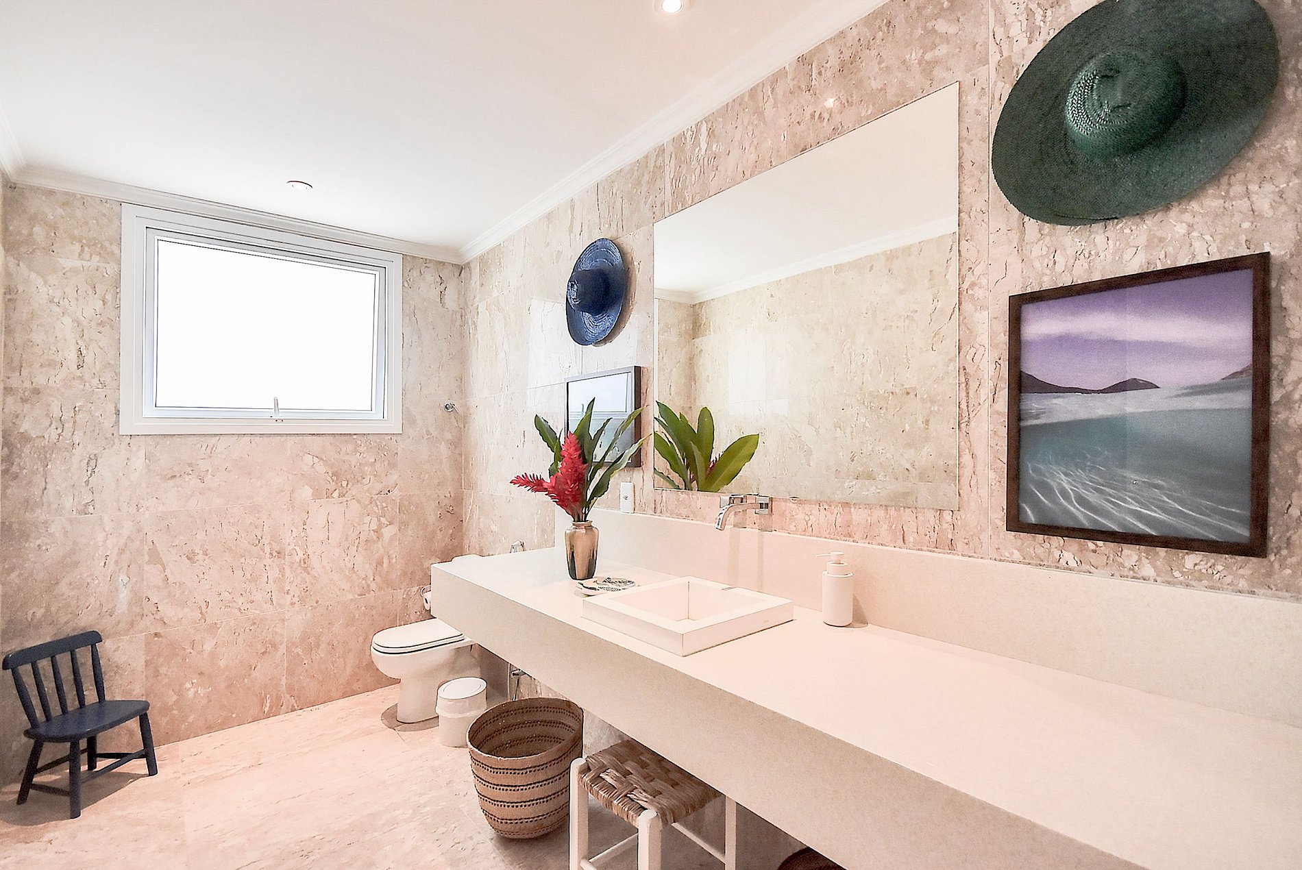 La villa dispose d'un beau et spacieux salon avec des décorations de beaux ornements artisanaux de la région qui sont également insérés dans chaque pièce de la villa. En haut des escaliers, il y a un espace pour enfants avec une télévision et les belles suites de la villa, au total il y a 6 chambres, 4 d'entre elles ont un lit double, une chambre avec deux lits simples et un lit bébé, et la dernière avec 3 lits célibataires, certains d'entre eux ont un balcon avec une belle vue qui contemple les beaux paysages du ciel et de la mer d'Angra, d'autres avec une vue sur le paysage forestier pour ceux qui aiment se réveiller et voir les feuilles d'un vert vif et magnifique palmiers qui ornent l'entrée de la villa.