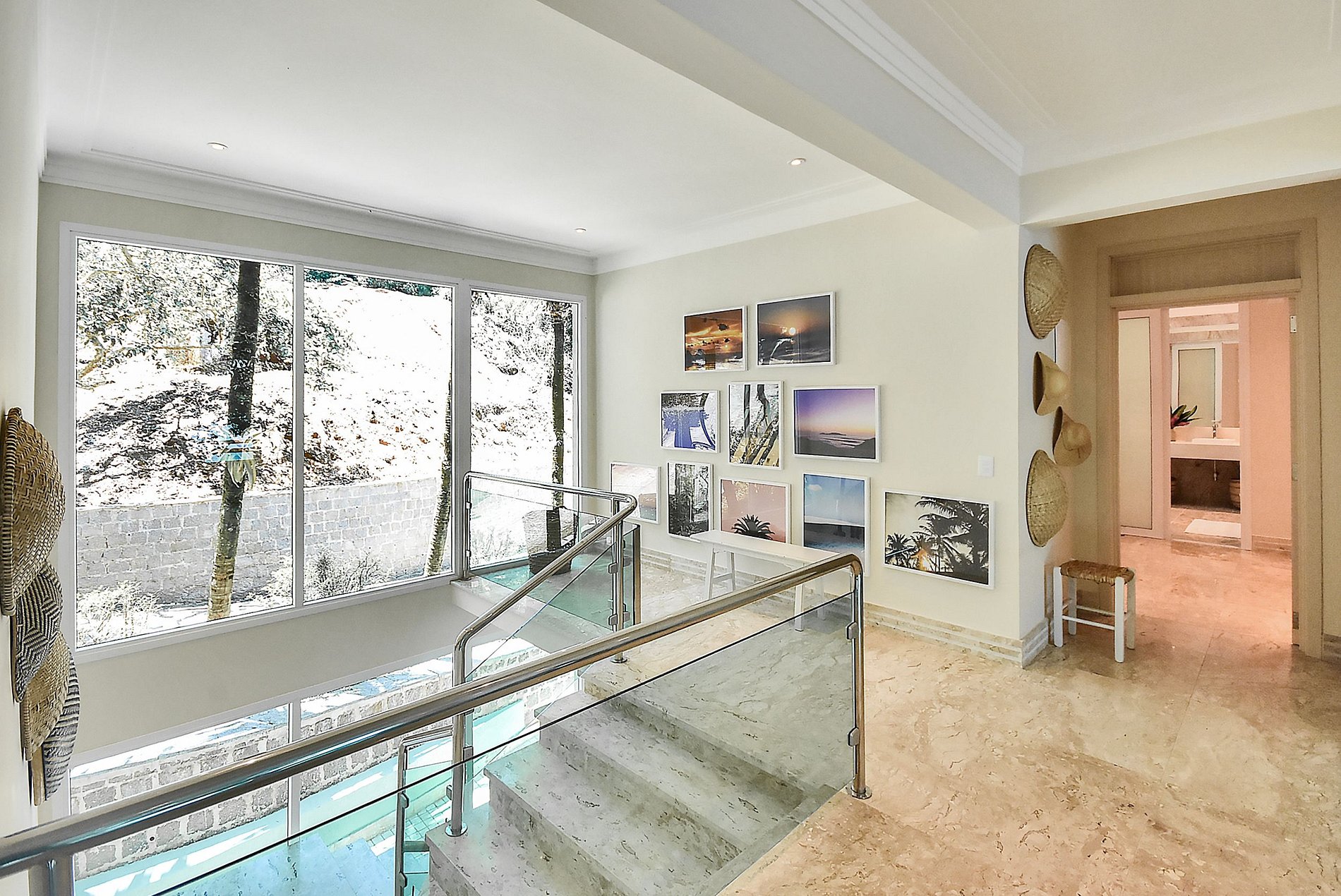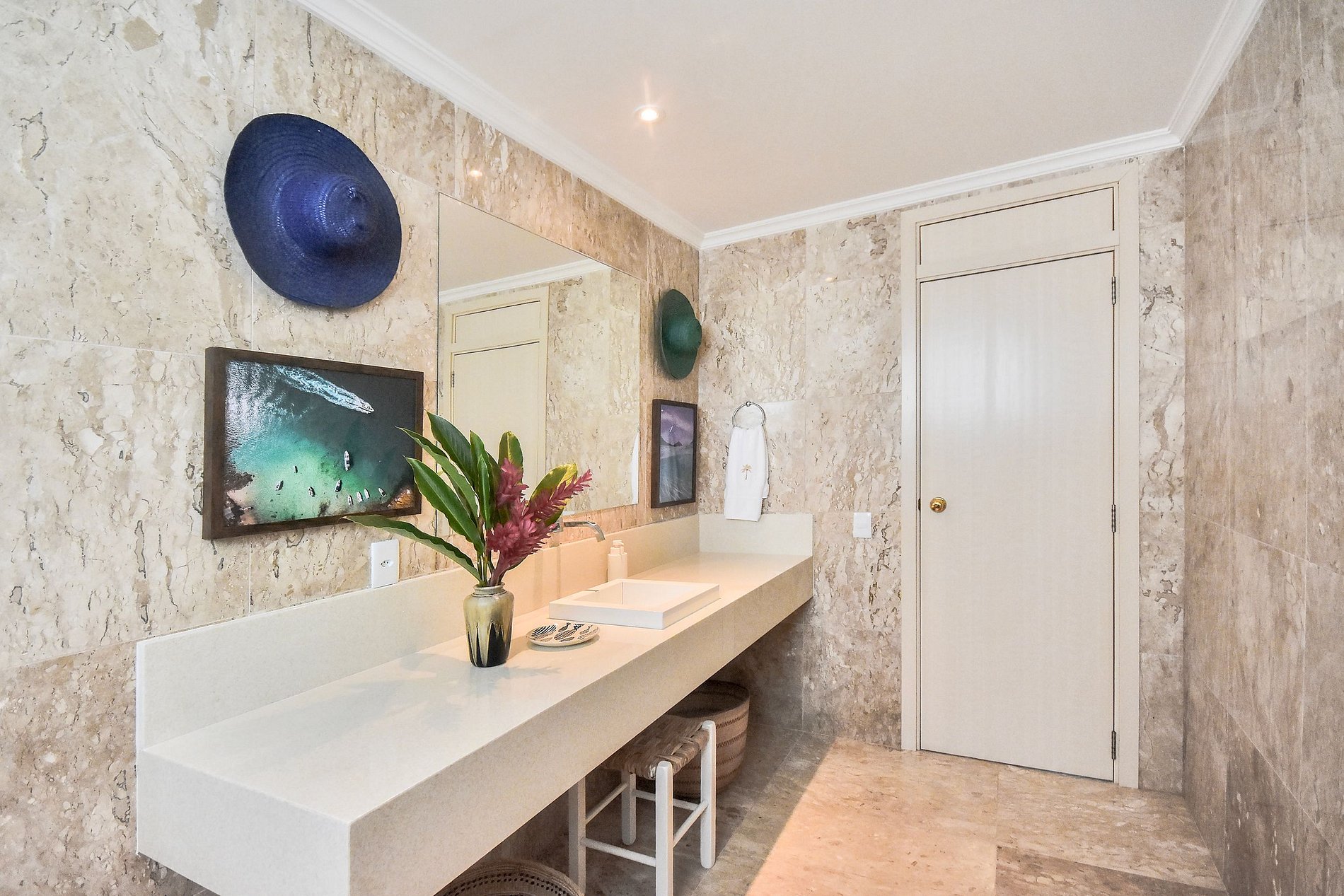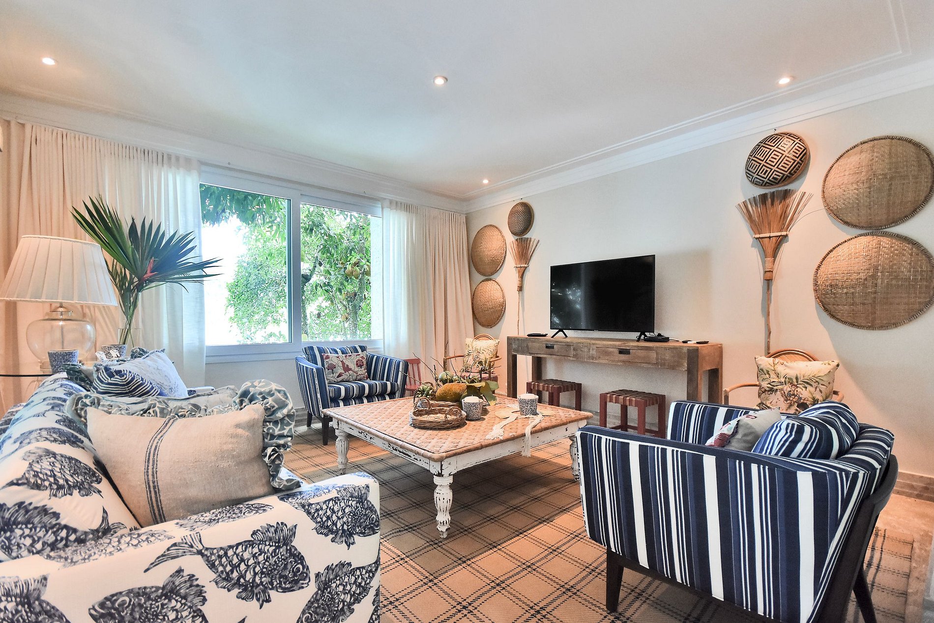 La villa dispose d'un beau et spacieux salon avec des décorations de beaux ornements artisanaux de la région qui sont également insérés dans chaque pièce de la villa. En haut des escaliers, il y a un espace pour enfants avec une télévision et les belles suites de la villa, au total il y a 6 chambres, 4 d'entre elles ont un lit double, une chambre avec deux lits simples et un lit bébé, et la dernière avec 3 lits célibataires, certains d'entre eux ont un balcon avec une belle vue qui contemple les beaux paysages du ciel et de la mer d'Angra, d'autres avec une vue sur le paysage forestier pour ceux qui aiment se réveiller et voir les feuilles d'un vert vif et magnifique palmiers qui ornent l'entrée de la villa.