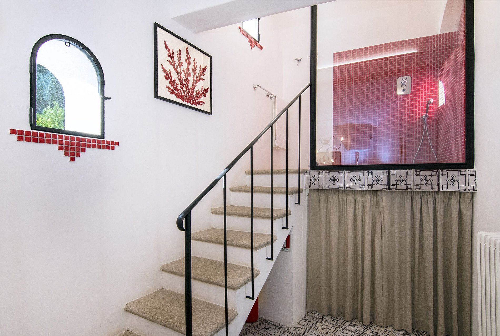 La villa entière est réservée à l'usage exclusif des invités, elle comprend 6 chambres et 5 + 1 salles de bains pouvant accueillir jusqu'à 12 personnes. Pour les groupes plus importants, une deuxième villa indépendante du même domaine peut être réservée pour accueillir jusqu'à 28 personnes. Il y a également plusieurs charmants chalets privés sur le domaine, qui peuvent être loués. Un chemin sinueux descend sous la tour jusqu'à une crique privée pour nager dans la mer et découvrir ses merveilles cachées. La propriété dispose également d'une piscine exclusive à deux niveaux, ingénieusement reliée par des marches communicantes, pour ceux qui préfèrent les bains de soleil au bord de la piscine.