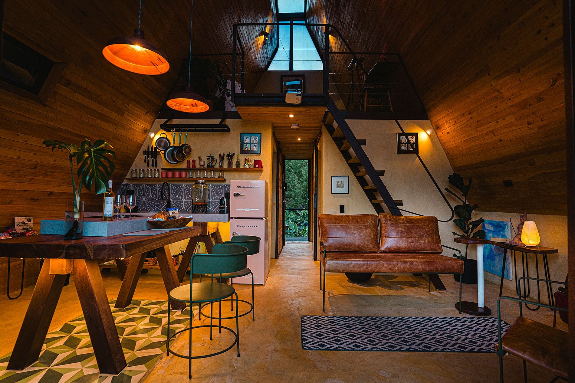 À l'intérieur, vous trouverez un design organique, épuré et moderne qui incarne le style Japandi—un mélange harmonieux de simplicité japonaise et de fonctionnalité scandinave. Avec un toit en verre qui inonde l'espace de lumière naturelle, vous pouvez observer les étoiles depuis le confort de votre salon ou vous blottir devant la cheminée à bois tout en jouant aux échecs.