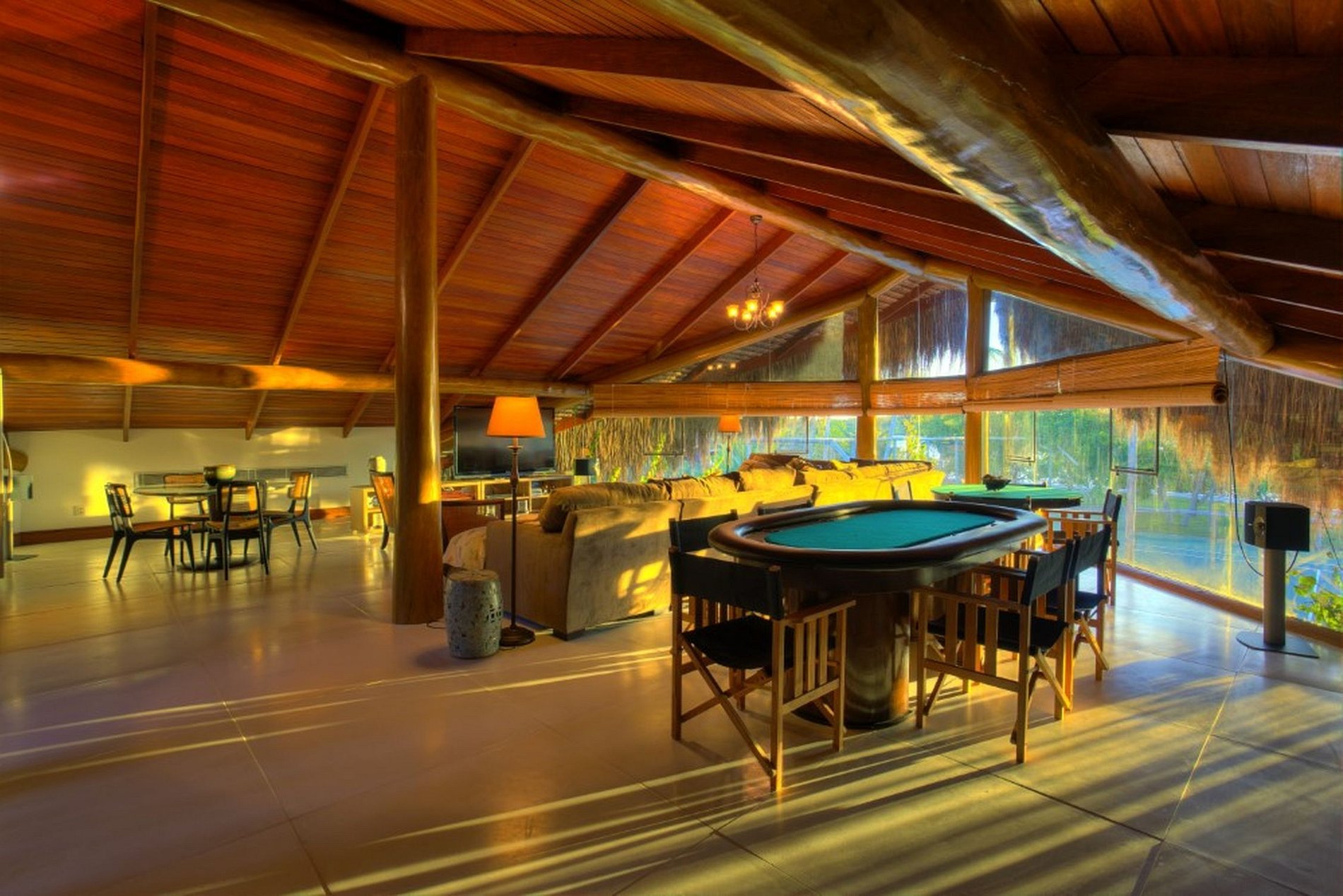 La propriété est composée d'incroyables chalets avec leur structure et finition en bois poli et toit en bois et paille, ce qui donne aux chalets un style de bord de plage. Le chalet principal est situé au centre de l'île, dispose de 2 étages, climatisation centrale, système de son intégré pour les événements et fêtes et dispose au rez-de-chaussée de deux salons, un salon ouvert sur la piscine et la deuxième salle fermée et parfaitement décorée avec des meubles sélectionnés et une grande table à manger pour 12 personnes. Au deuxième étage, il y a une salle de jeux avec table de billard, ping-pong et baby-foot.