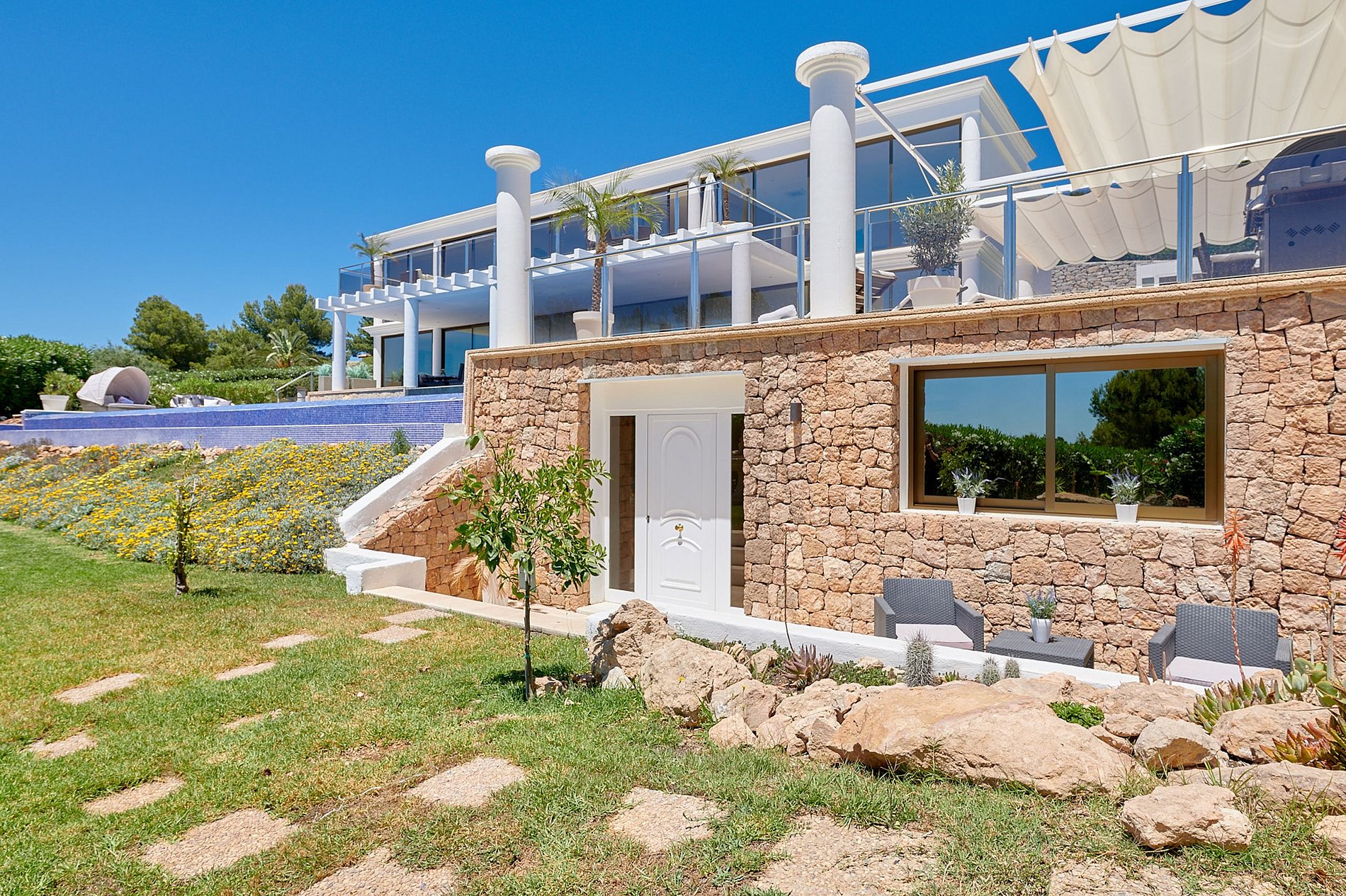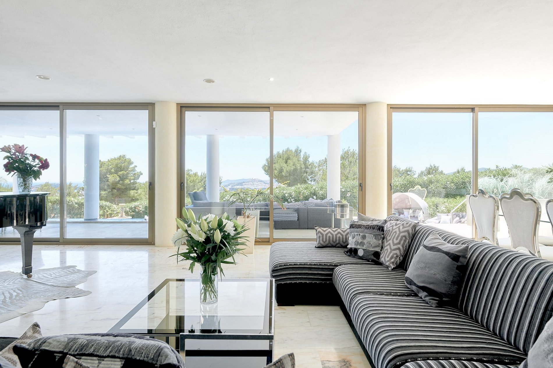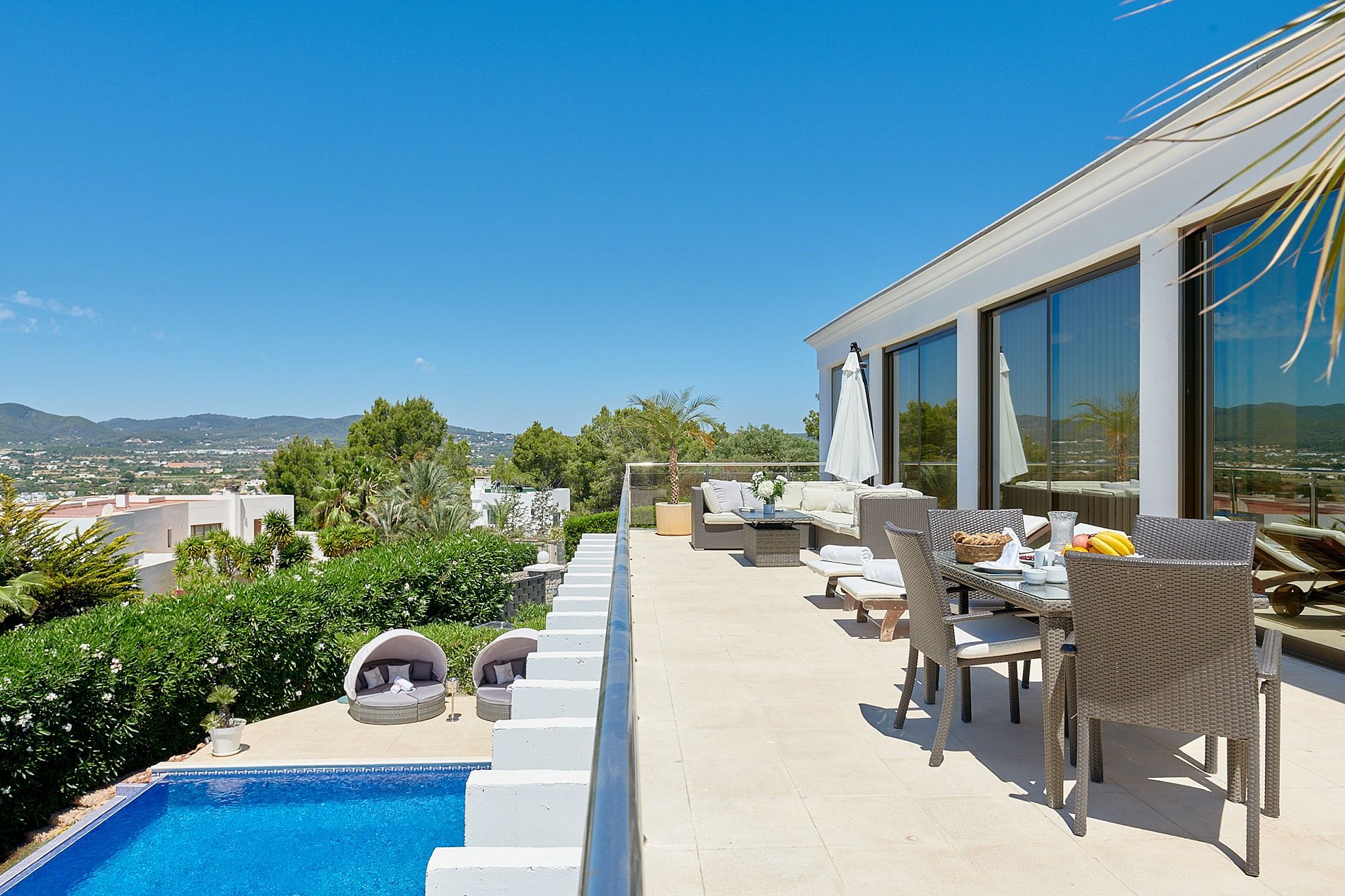 Villa située à seulement 5 minutes de la ville d'Ibiza, dans un quartier privé et sécurisé, offrant une vue impressionnante sur Ibiza, la Méditerranée et Formentera. À seulement 2 minutes en voiture du charmant petit village de Jesus, de la plage de Talamanca et du plus grand port d'Ibiza, Marina Botafoch, où sont situés tous les meilleurs spots et boutiques d'Ibiza.