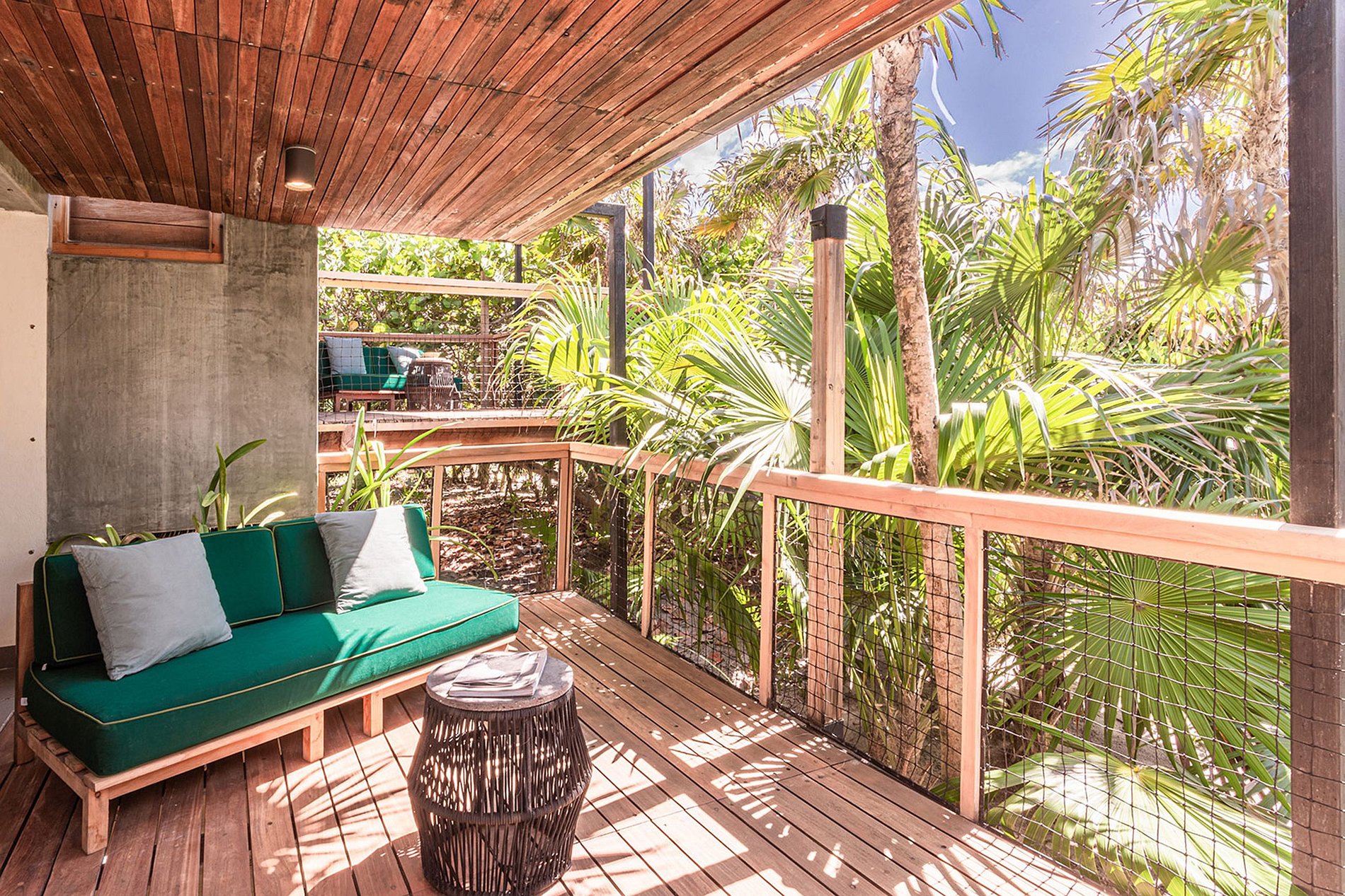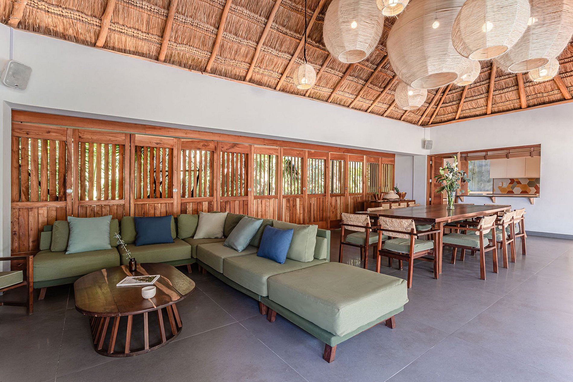 En raison de son emplacement dans une zone naturelle protégée et site du patrimoine mondial, la villa utilise de la technologie pour réduire la consommation d'énergie et d'eau. Leurs appareils modernes sont alimentés par l'énergie éolienne et solaire, tandis que l'eau de pluie est collectée pour répondre à la plupart des besoins des clients. Et bien que la climatisation soit disponible, la résidence est conçue pour maximiser la circulation de l'air et rester fraîche et confortable toute l'année. Au-delà de la principale «palapa», les dunes naturelles, avec leurs palmiers et leurs hamacs douillets, sont le prélude à une incroyable plage de sable blanc privée.