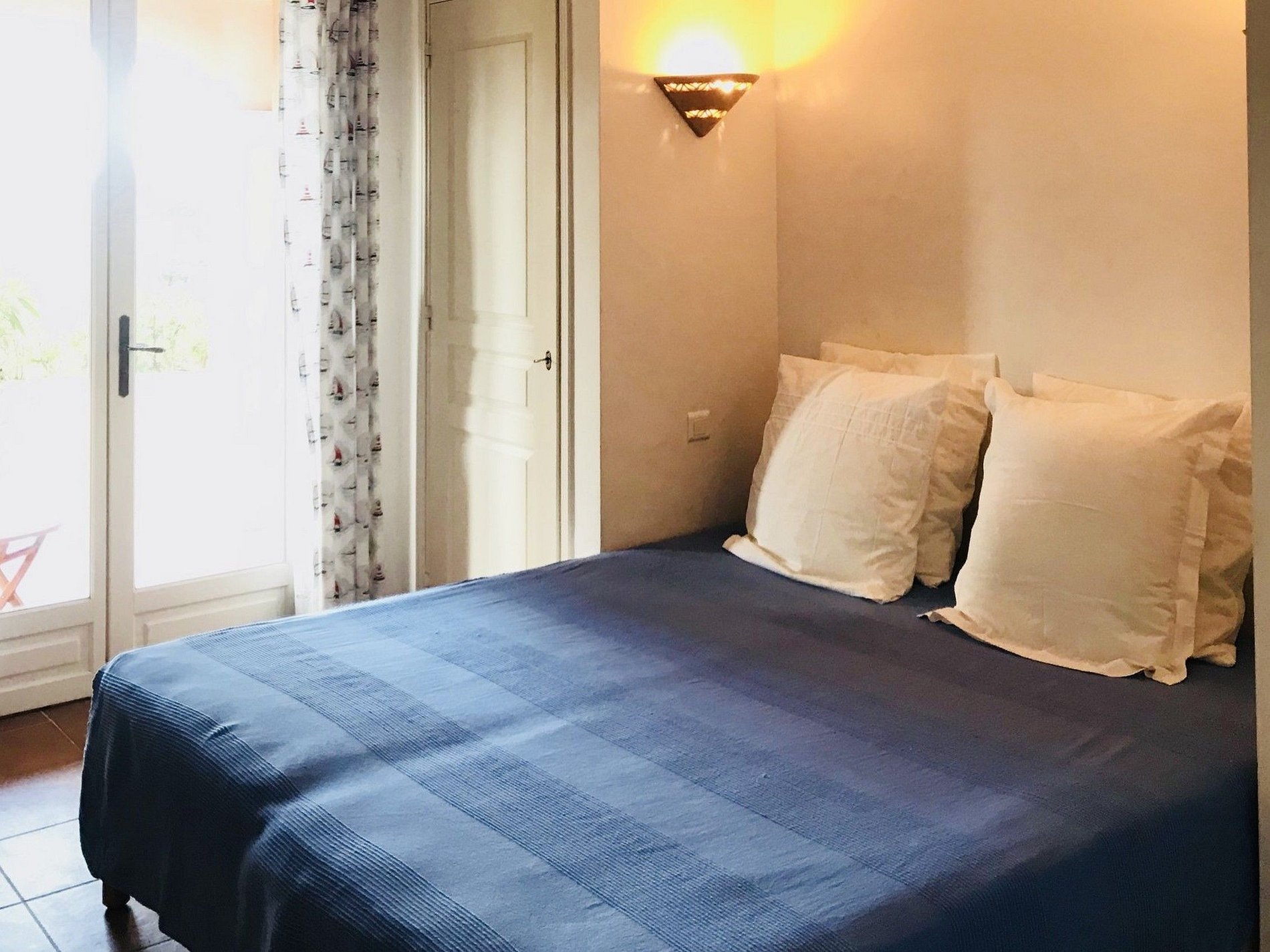 La villa se compose de trois belles chambres climatisées, chacune équipée d’un lit double et bénéficiant d’un accès direct au jardin, créant une continuité agréable entre intérieur et extérieur. La suite parentale dispose d’une salle de bains avec baignoire, offrant un espace intime et confortable.