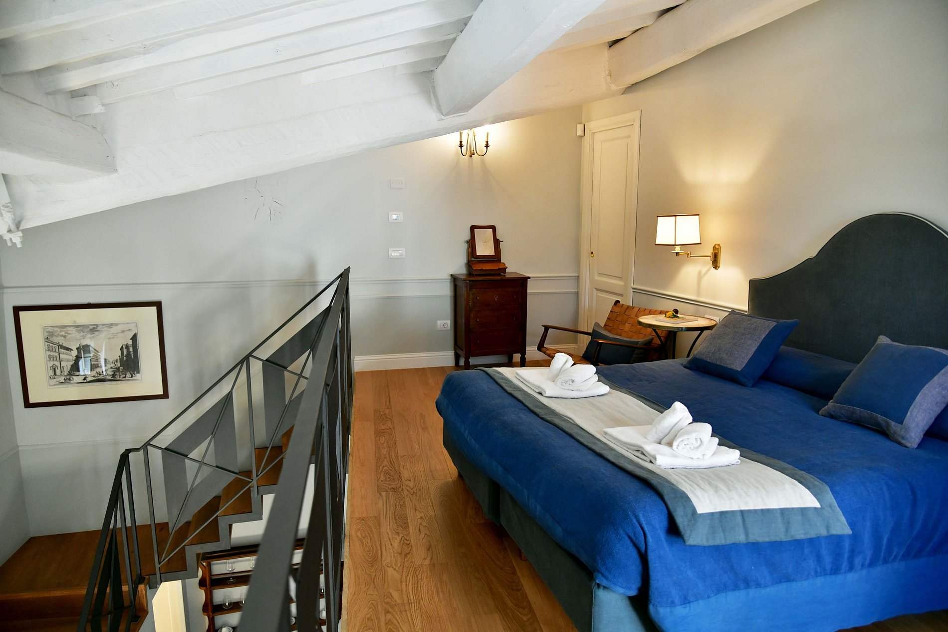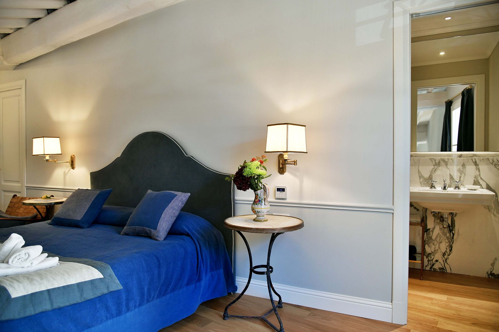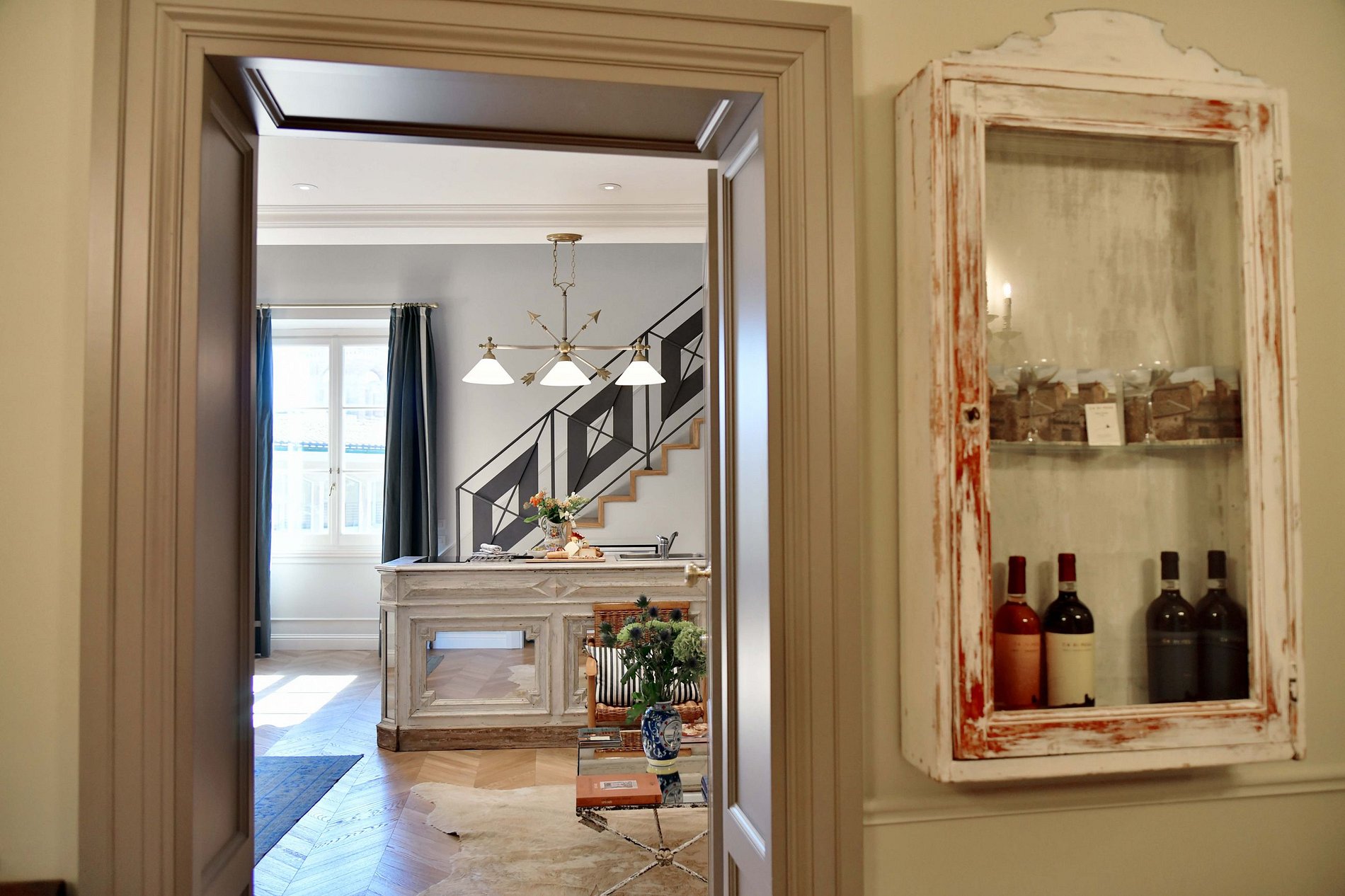 Ce luxueux appartement de 65 mètres carrés, dans un immeuble prestigieux du centre de Florence, est élégamment et traditionnellement meublé avec des pièces antiques, des tapisseries originales et une superbe douche en marbre. Outre la chambre à coucher, l'appartement comprend un salon avec un double canapé-lit, une autre salle de bains et une terrasse avec une vue magique sur le centre de Florence.