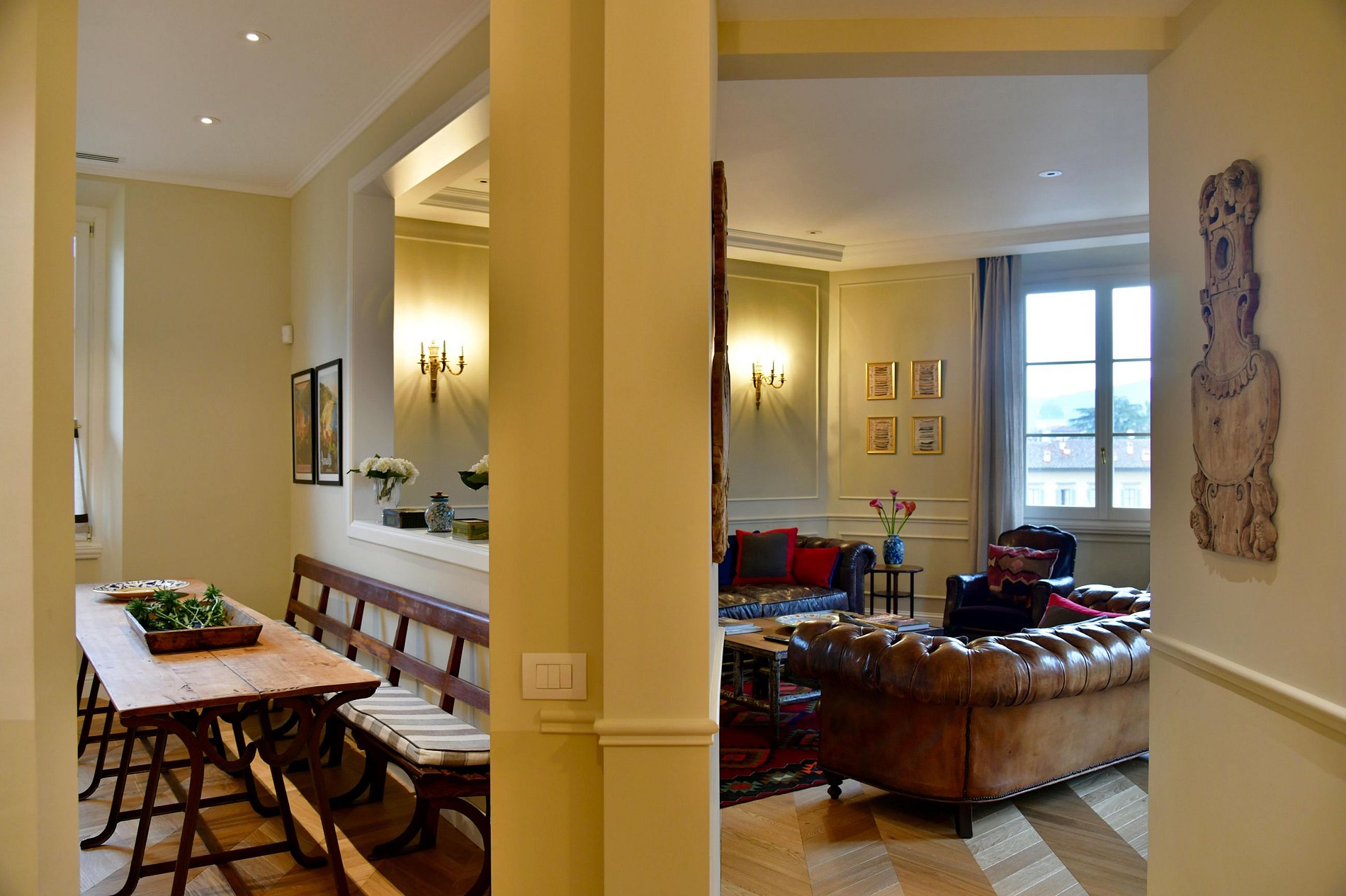 Ce grand et luxueux appartement de 200 m2, dans un immeuble prestigieux du centre de Florence, est meublé de manière unique et élégante, occupant deux étages, avec 3 chambres doubles : une chambre avec salle de bain au rez-de-chaussée, une deuxième chambre avec salle de bain au premier étage, une troisième chambre sans salle de bain au premier étage. L'appartement dispose également d'une cuisine bien équipée, d'un bureau, d'un grand salon avec canapé et d'une superbe terrasse avec vue sur la ville.