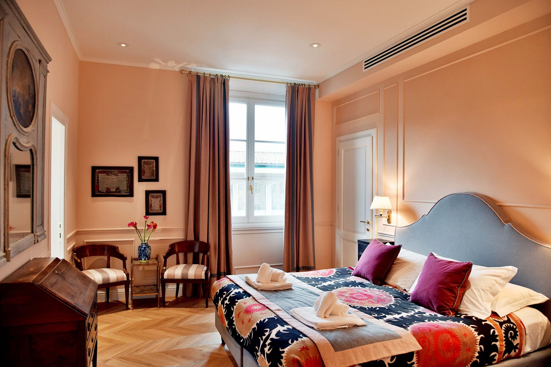 Ce grand et luxueux appartement de 200 m2, dans un immeuble prestigieux du centre de Florence, est meublé de manière unique et élégante, occupant deux étages, avec 3 chambres doubles : une chambre avec salle de bain au rez-de-chaussée, une deuxième chambre avec salle de bain au premier étage, une troisième chambre sans salle de bain au premier étage. L'appartement dispose également d'une cuisine bien équipée, d'un bureau, d'un grand salon avec canapé et d'une superbe terrasse avec vue sur la ville.