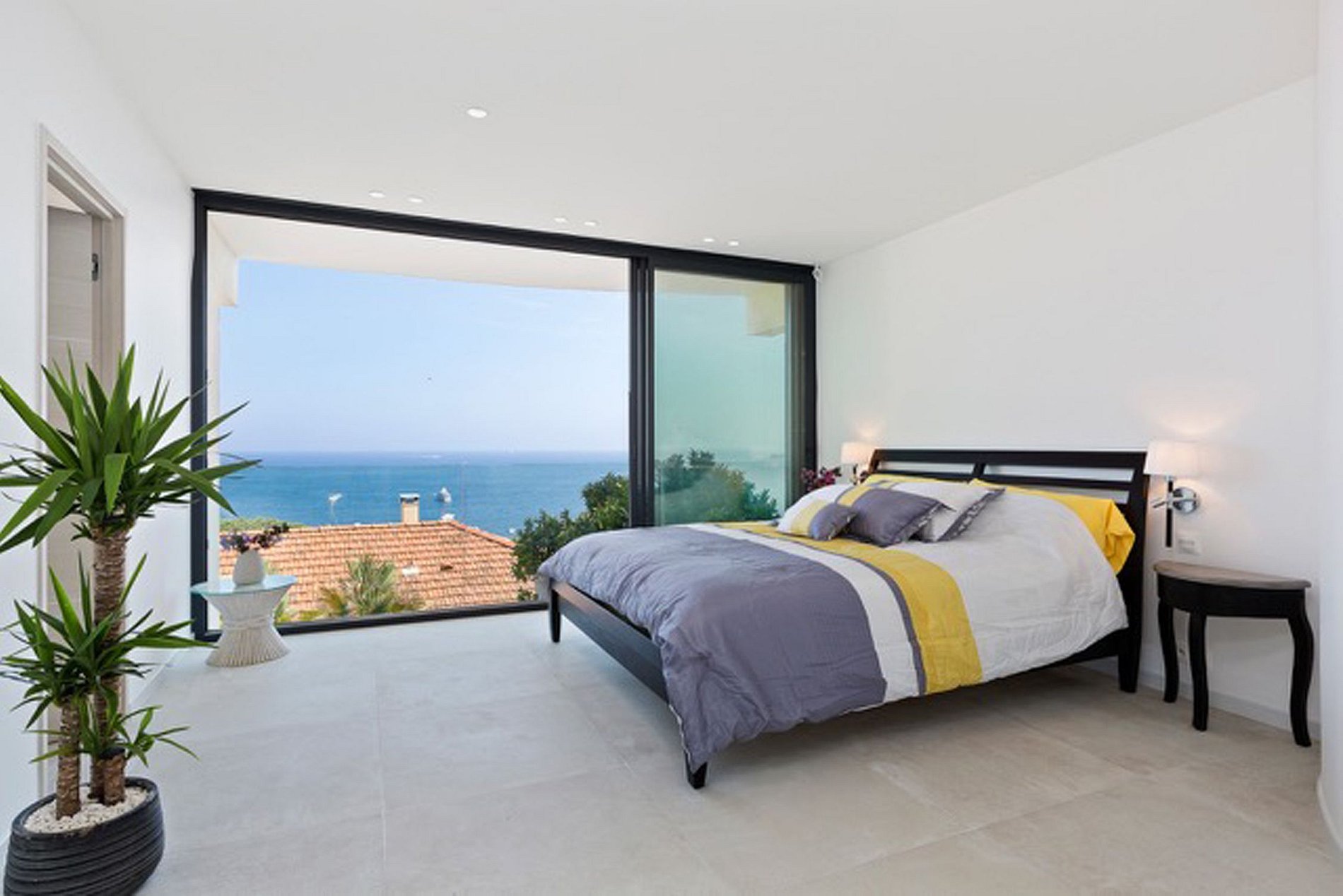 La villa a une surface habitable de 365 m2 sur deux étages, son design est moderne, elle est composée d'un salon ouvert sur une cuisine entièrement équipée ouverte sur la terrasse et cinq chambres, toutes avec salle de bains et vue sur la mer. Un toit-terrasse avec vue panoramique sur la Côte d'Azur est également l'endroit idéal pour des cocktails au coucher du soleil.