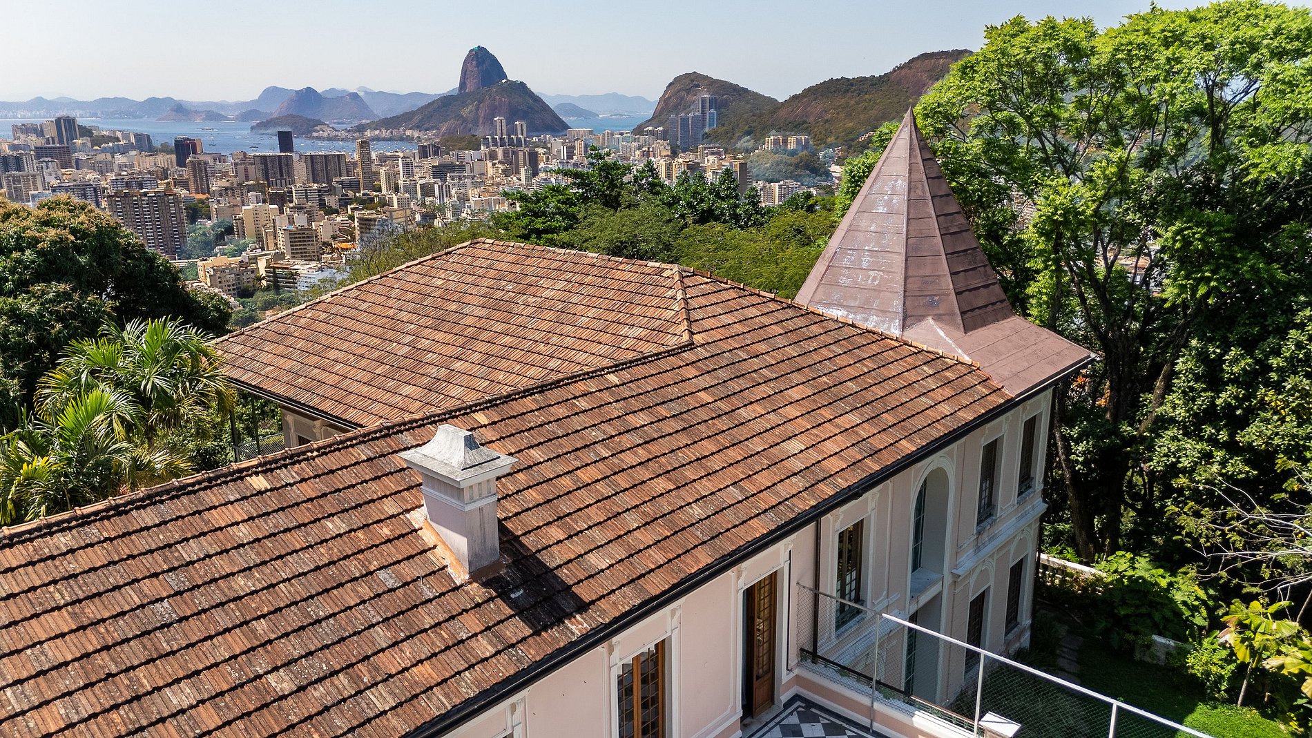 Entièrement rénovée en 2016, la maison principale conjugue patrimoine et modernité. Elle dispose de six suites élégantes, d’un vaste salon, d’une bibliothèque et de terrasses offrant une vue imprenable sur la Baie de Guanabara et le Pain de Sucre. Chaque espace respire l’âme de Rio, entre histoire, nature et raffinement.