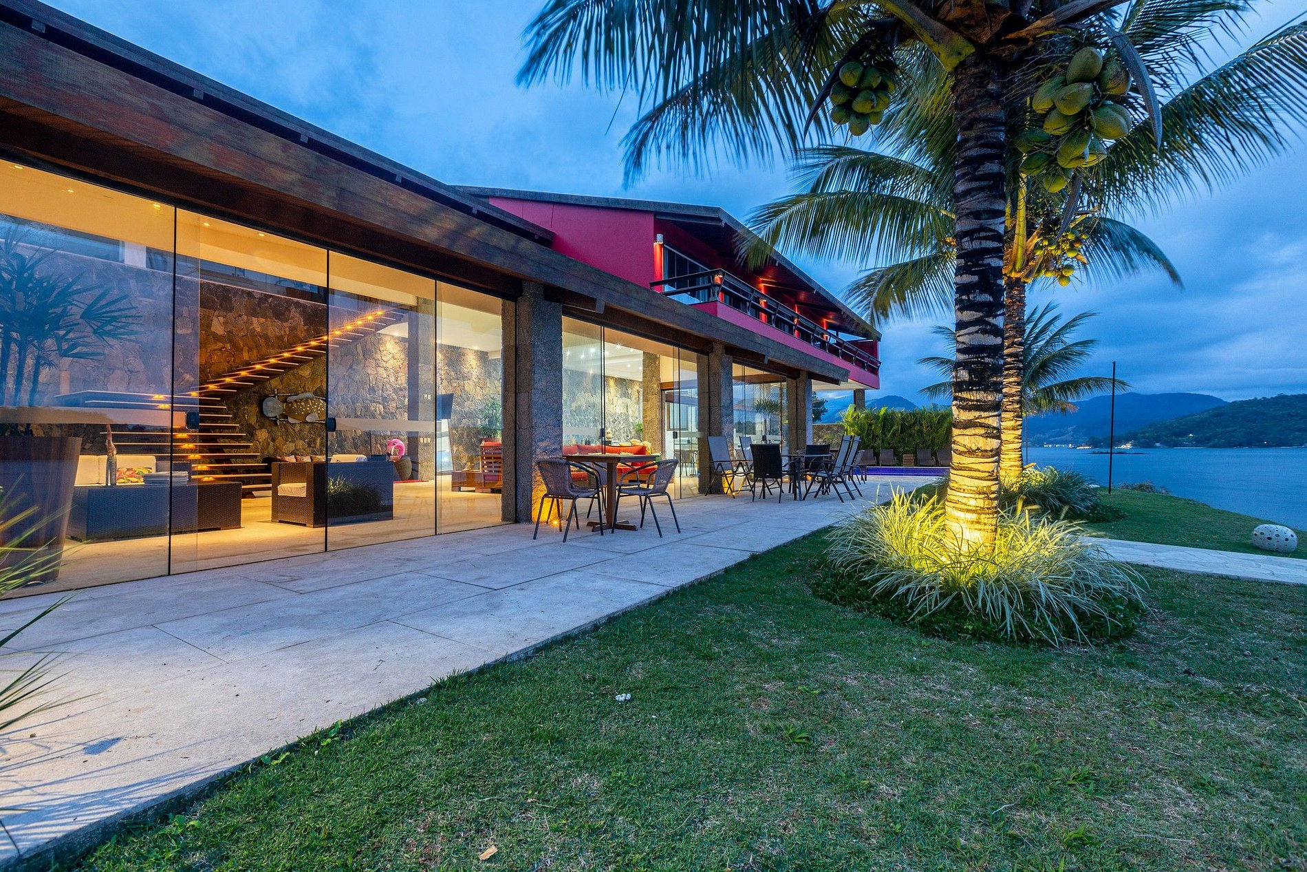 Belle maison située dans l'une des plus belles copropriétés boisées d'Angra dos Reis avec une petite plage et une vue dégagée sur la mer.