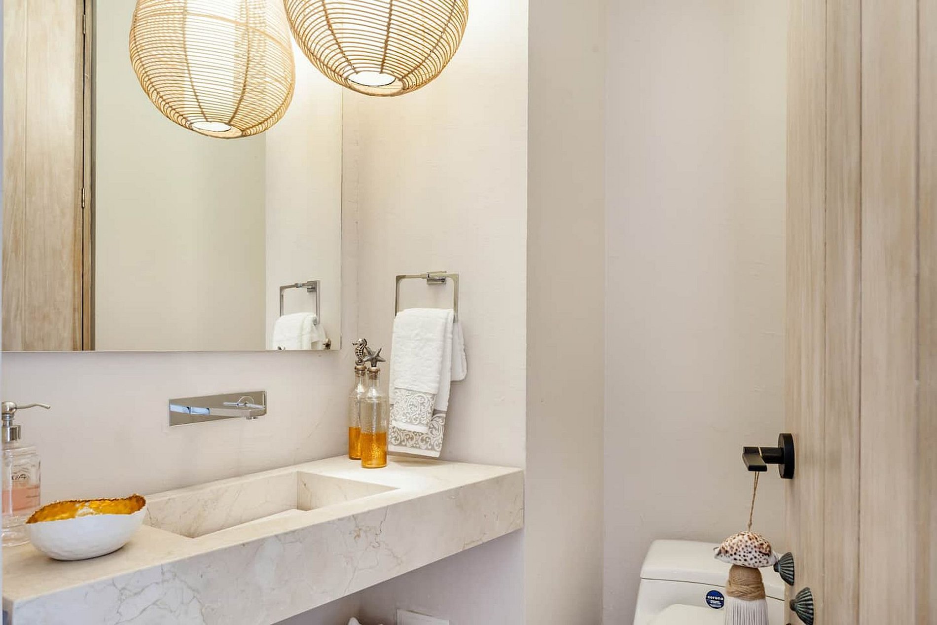 Les cinq chambres sont soigneusement conçues, toutes équipées de climatisation et de salles de bains attenantes avec des comptoirs en marbre :