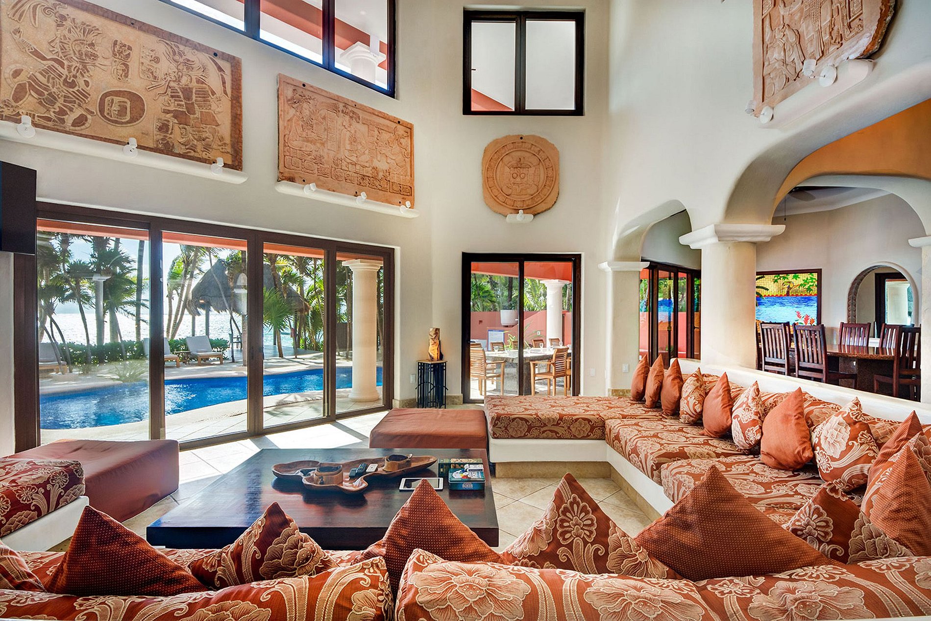 Son salon spacieux offre un plafond de 9 mètres, une impressionnante chaise longue en demi-cercle pouvant accueillir confortablement ses invités avec une vue spectaculaire sur la piscine et la plage, idéale pour se détendre et se divertir. L'espace piscine est également équipé d'une douche extérieure pour votre confort. Un accès Internet gratuit est disponible, ce qui le rend idéal pour les vacanciers modernes. Notre responsable fournit également une assistance personnelle qui comprend la planification d'excursions d'une journée et la réservation d'authentiques massages mayas dans le confort de la maison de vacances de vos rêves. La maison dispose de cinq gardiens à plein temps et un service de sécurité est également inclus, via une entreprise qui met à votre disposition un gardien de nuit dans votre maison de vacances.
