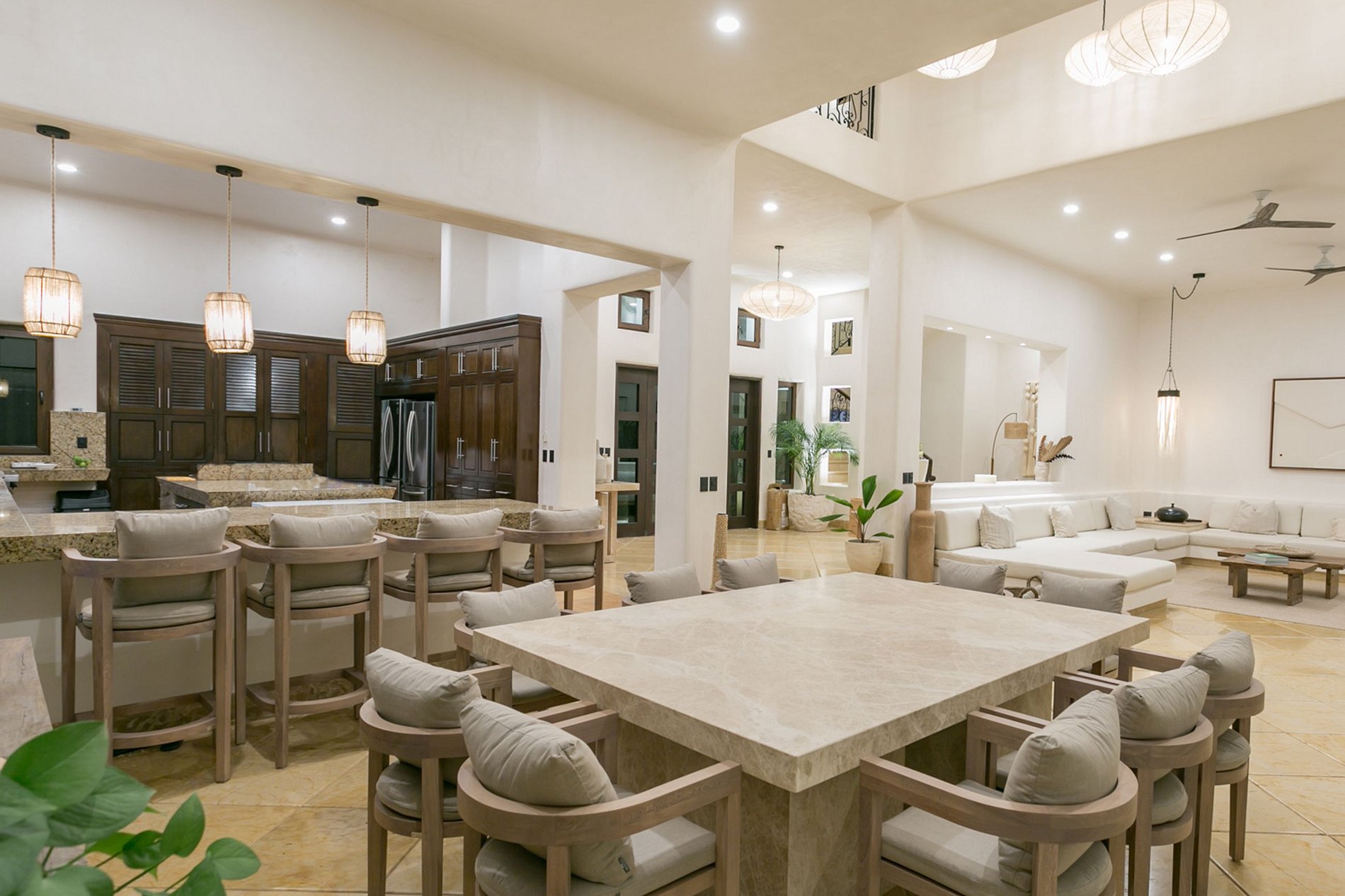 La décoration est imprégnée du thème terrestre de cette oasis couleur brique. La plupart des environnements présentent des conceptions basées sur le concept de pièces ouvertes et offrent presque tous une vue époustouflante sur l'océan. Chaque chambre est peinte dans ses propres couleurs pastel, tandis que les parties communes sont couvertes de tons de terre agréables. Le mobilier attrayant, notamment les lustres et les œuvres d'art, ajoute une touche d'élégance à l'environnement. Cette villa de luxe est absolument la destination idéale en toutes circonstances.