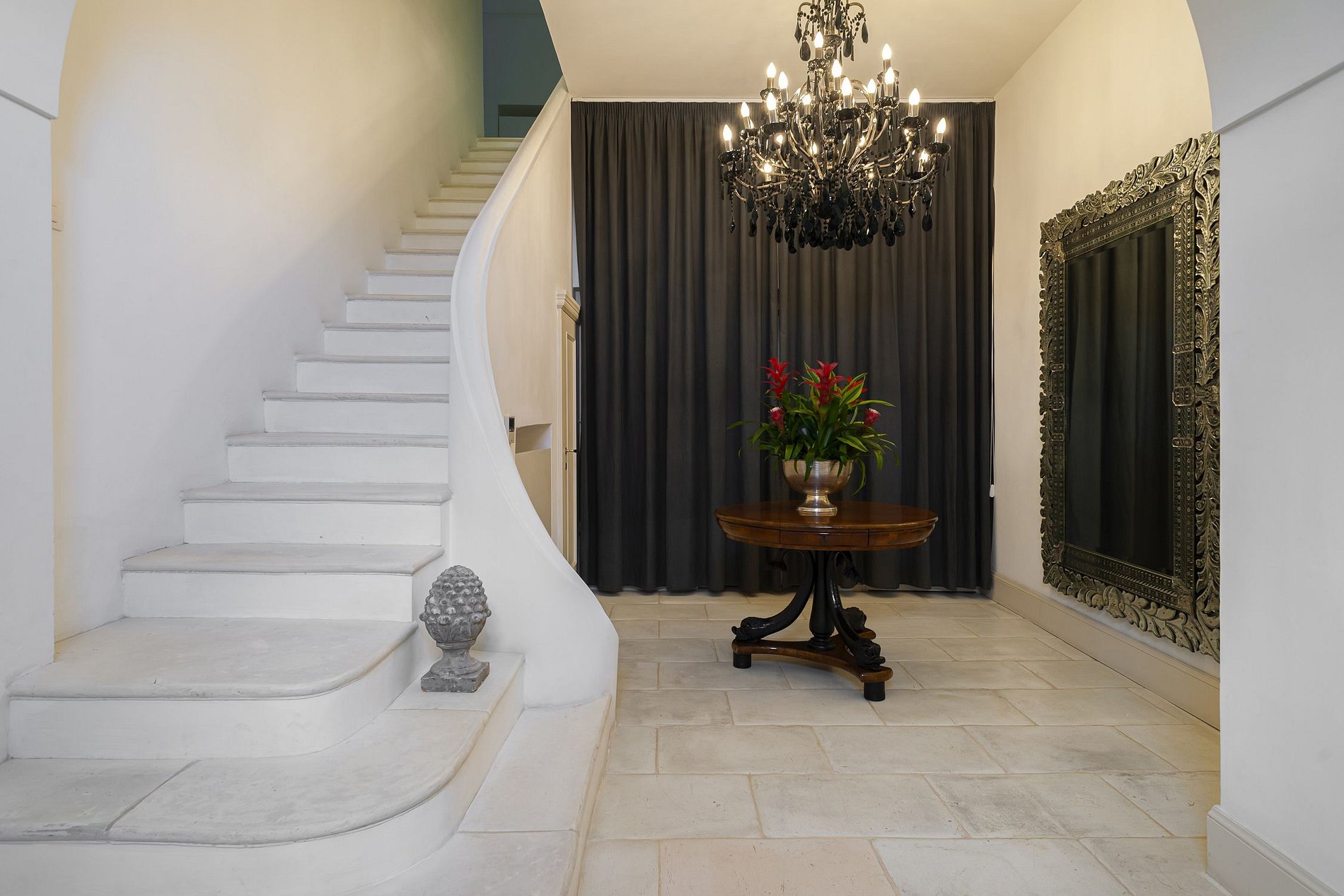 À l'extérieur, il y a 7 chaises longues avec des coussins et des serviettes de piscine de qualité supérieure. Depuis la terrasse de la piscine, une colonnade traditionnelle de Capri surplombe le centre-ville de Capri offrant un aperçu du mont Solaro. De petits palmiers en pot bordent la belle terrasse pavée.
