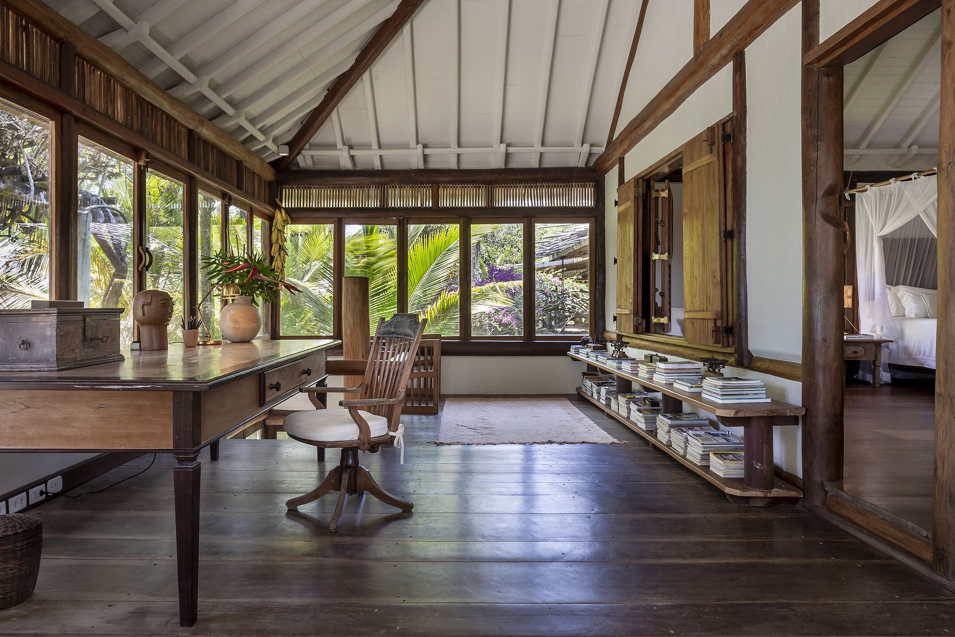 Villa avec accès exclusif, traversant un pont en bois sur un affluent du Rio da Barra. Environnement de nature intacte, construction en harmonie qui remplit les espaces et les sens.