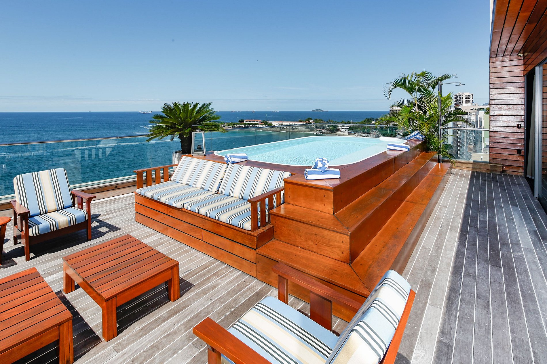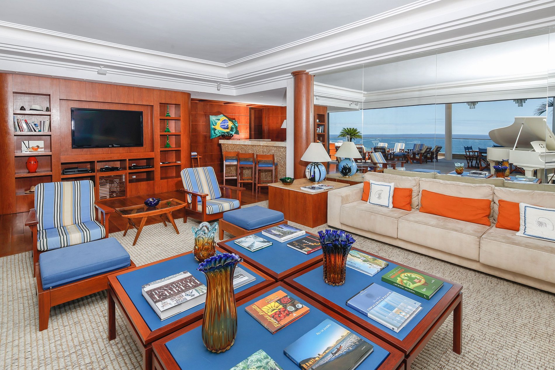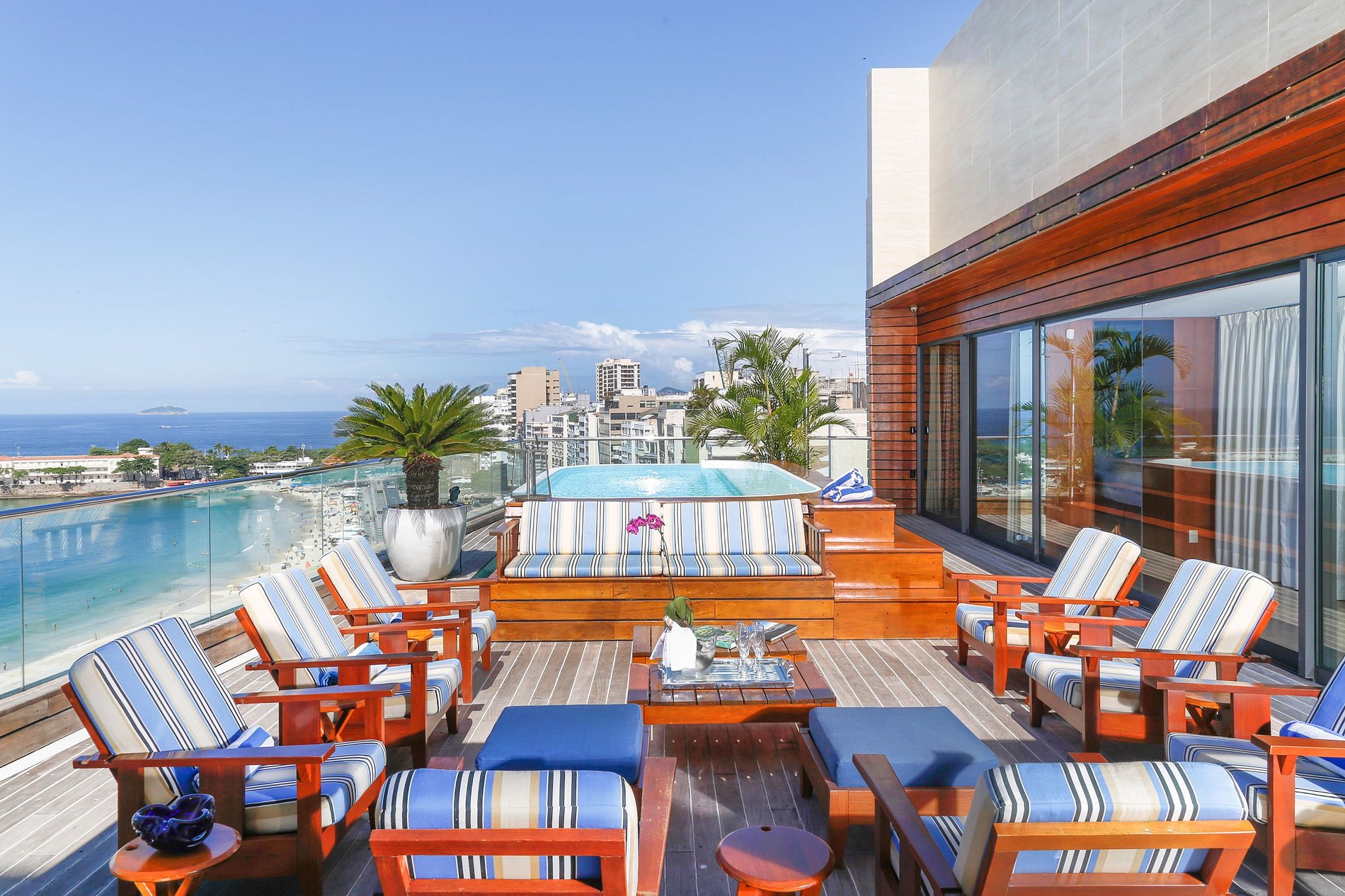 Imaginez séjourner dans un magnifique et spacieux penthouse de luxe surplombant la plage de Copacabana. Cet élégant penthouse est une escapade de luxe idéale pour ceux qui recherchent la vie à la plage, le soleil et l'intimité de Rio de Janeiro. La vue sur la plage depuis votre terrasse privée est à couper le souffle ! De plus, vous serez plongé dans un décor à thème maritime rappelant les grands jours de Rio lorsque les bateaux de croisière classiques ornaient les quais du port.