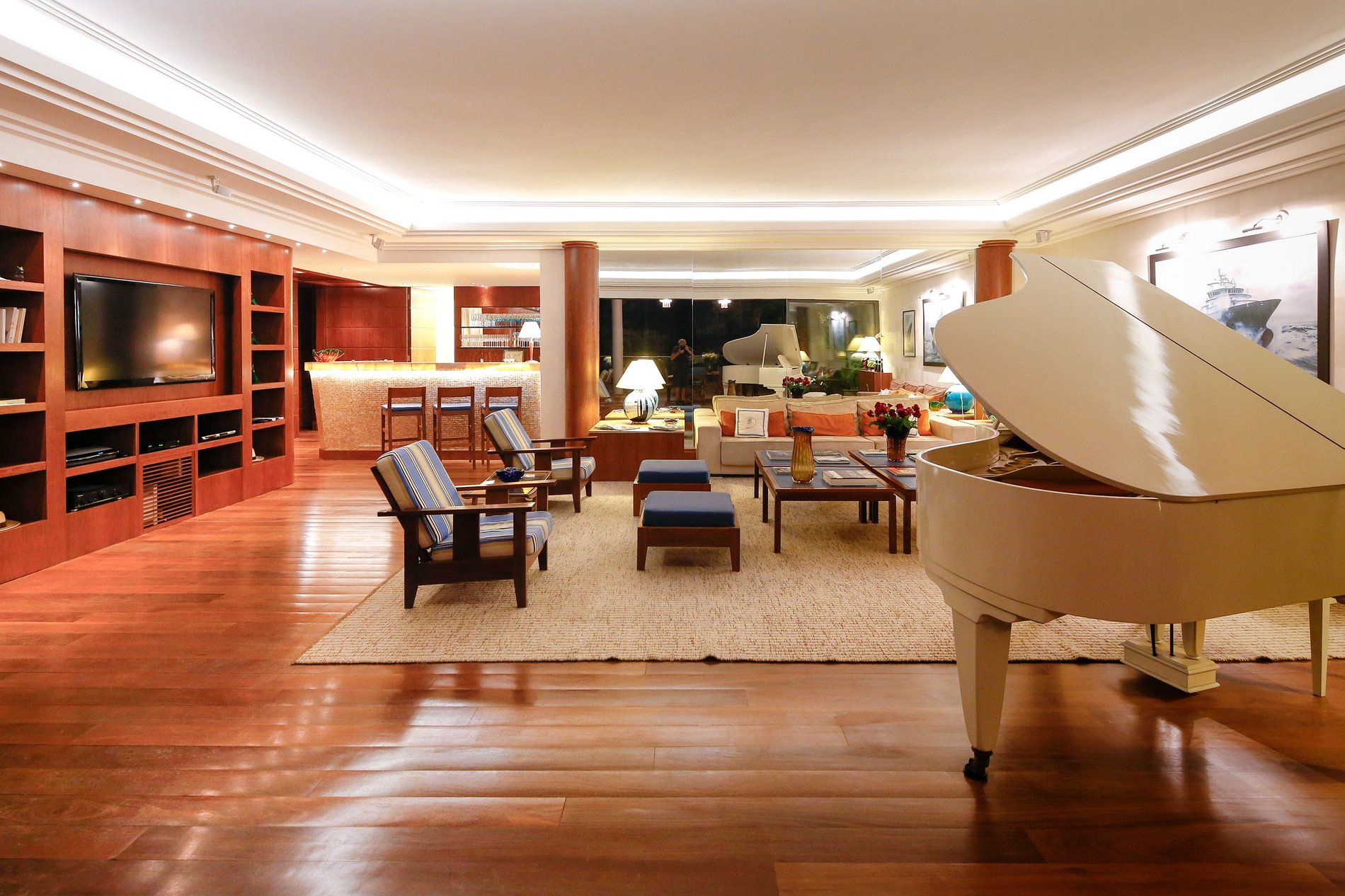 La cuisine est moderne, le bar est spacieux et le salon s'ouvre en grand sur la terrasse, l'océan Atlantique vous accueille dans toute son étendue à perte de vue. La salle à manger est sur la terrasse - sous un auvent en toile construit sur mesure, afin que vous puissiez profiter de votre emplacement au bord de l'eau lorsque vous dînez - matin, midi et soir. Les meubles sont importés d'Europe et il y a tout le confort moderne, y compris le Wi-Fi, le système de son et la télévision par câble. Si vous êtes mélomane, vous serez ravi de savoir qu'il y a un piano à queue à l'entrée de la terrasse !