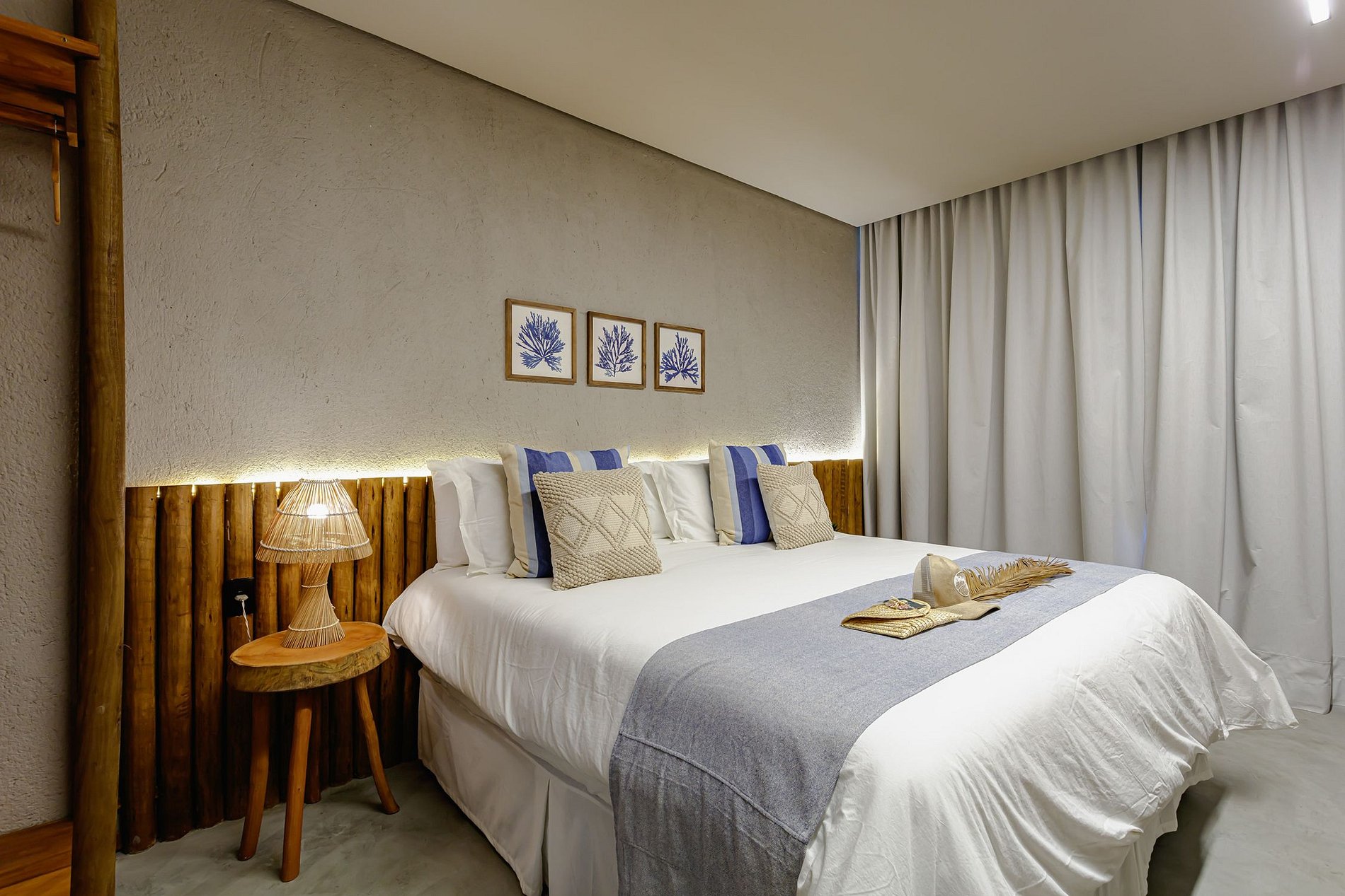 Une maison de charme avec 5 suites, pouvant accueillir jusqu'à 14 personnes, située en bord de mer sur la plage de Passo de Camaragibe, à Alagoas, faisant partie d'une propriété de 3 maisons identiques. Il y a 4 suites à l'étage supérieur et une au rez-de-chaussée, toutes climatisées pour le confort des clients.