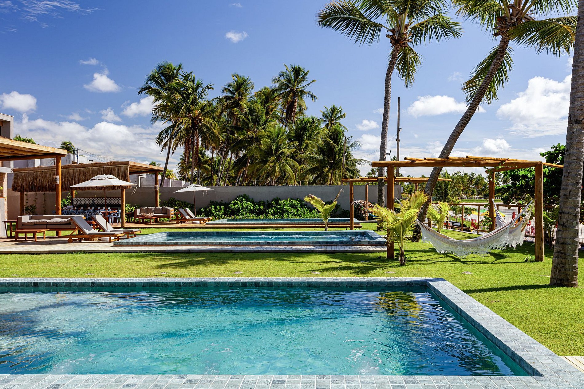 L'emplacement est idéal pour ceux qui cherchent à se détendre et à profiter de la beauté naturelle du lieu, car les maisons sont situées en bord de mer, avec un accès direct à la plage. Il y a aussi un belvédère couvert et un hamac pour se détendre face à la mer.
