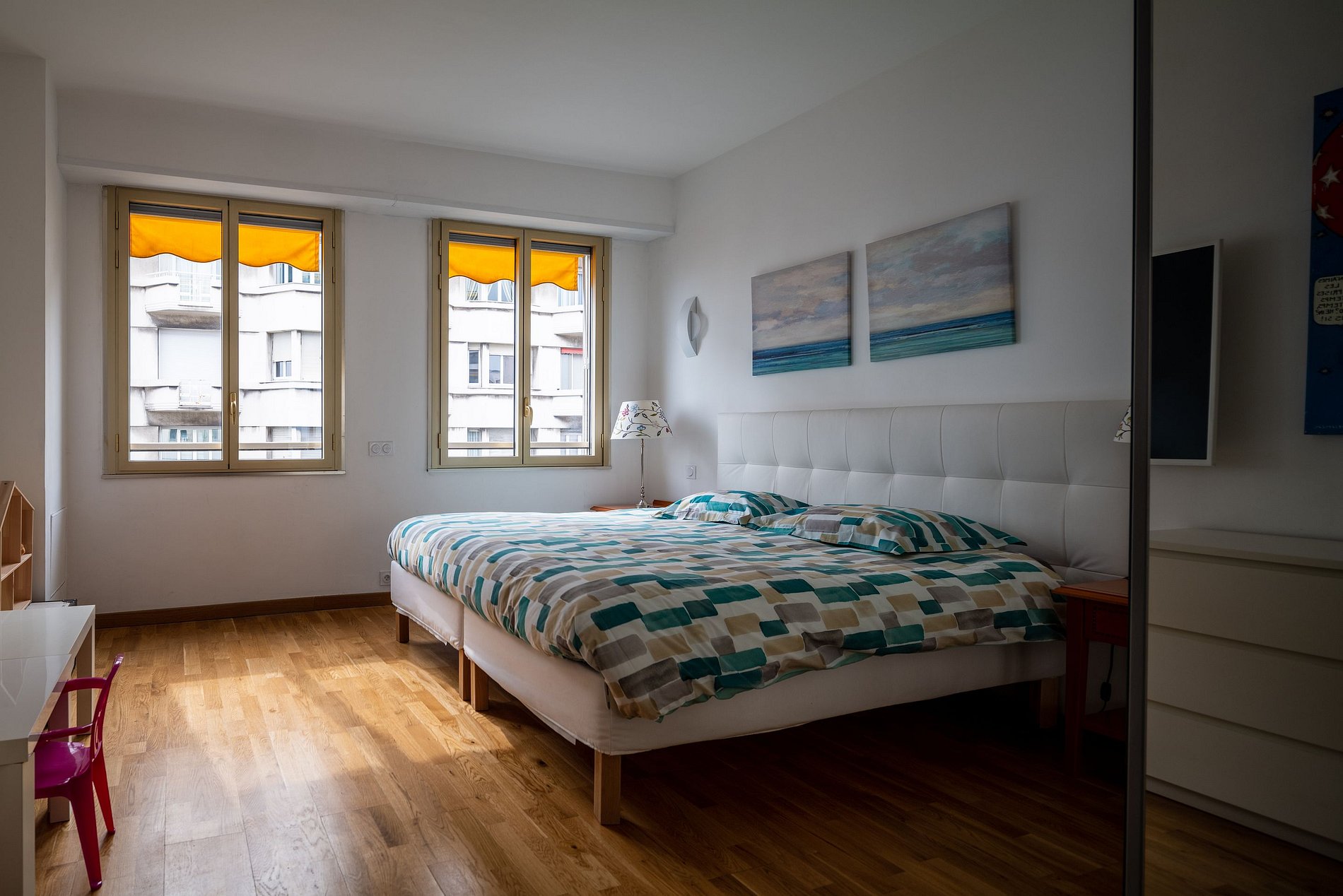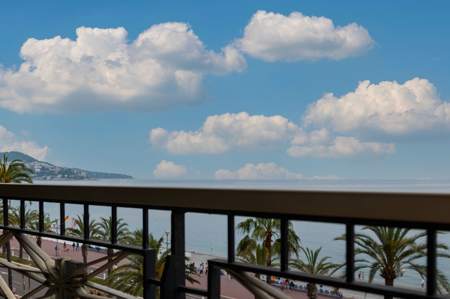 L'appartement est situé au début de la Promenade des Anglais, à 50 mètres de l'Hôtel Negresco, et à proximité des commerces, des restaurants, des bars branchés et même du casino pour les amateurs de jeux ! C'est un appartement de 140m² avec de grandes baies vitrées donnant sur la mer, avec une vue à 180°. Il dispose de 3 chambres en suite et peut accueillir jusqu'à 6 personnes. Toutes les chambres sont climatisées, avec un double vitrage. L'appartement est en angle avec 2 belles terrasses pour déjeuner et dîner face à la mer.