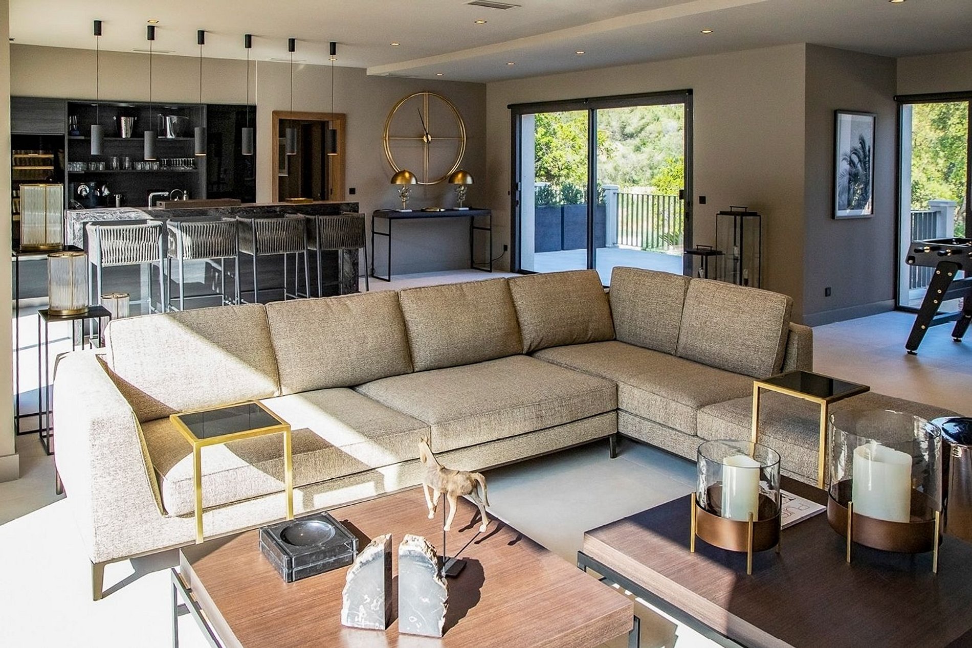 La résidence principale dispose d'un grand séjour de 120 m2 avec un bar, d'une cuisine familiale et d'un espace salle à manger.