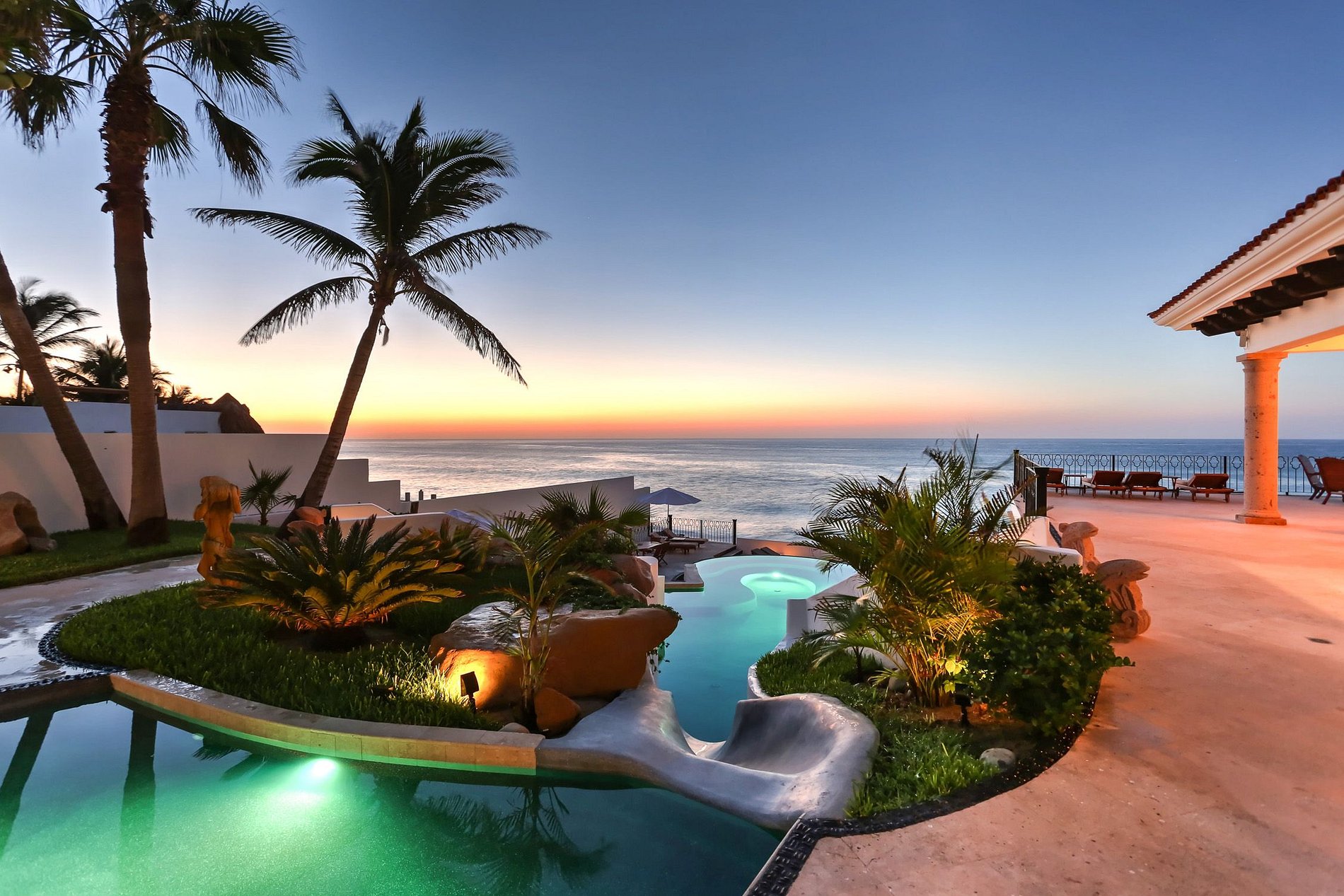 Les vues depuis les terrasses sont fantastiques. Profitez de la belle rencontre du soleil avec la mer de Cortez en fin de journée, savourez le meilleur de la cuisine locale et internationale préparée par un chef professionnel, ou savourez un martini sur ses terrasses ou tout droit depuis les chambres avec vue sur l'océan. Vous pouvez également profiter de vos soirées avec un barbecue appétissant tout en vous relaxant dans votre jacuzzi, vos piscines ou vos chaises longues.