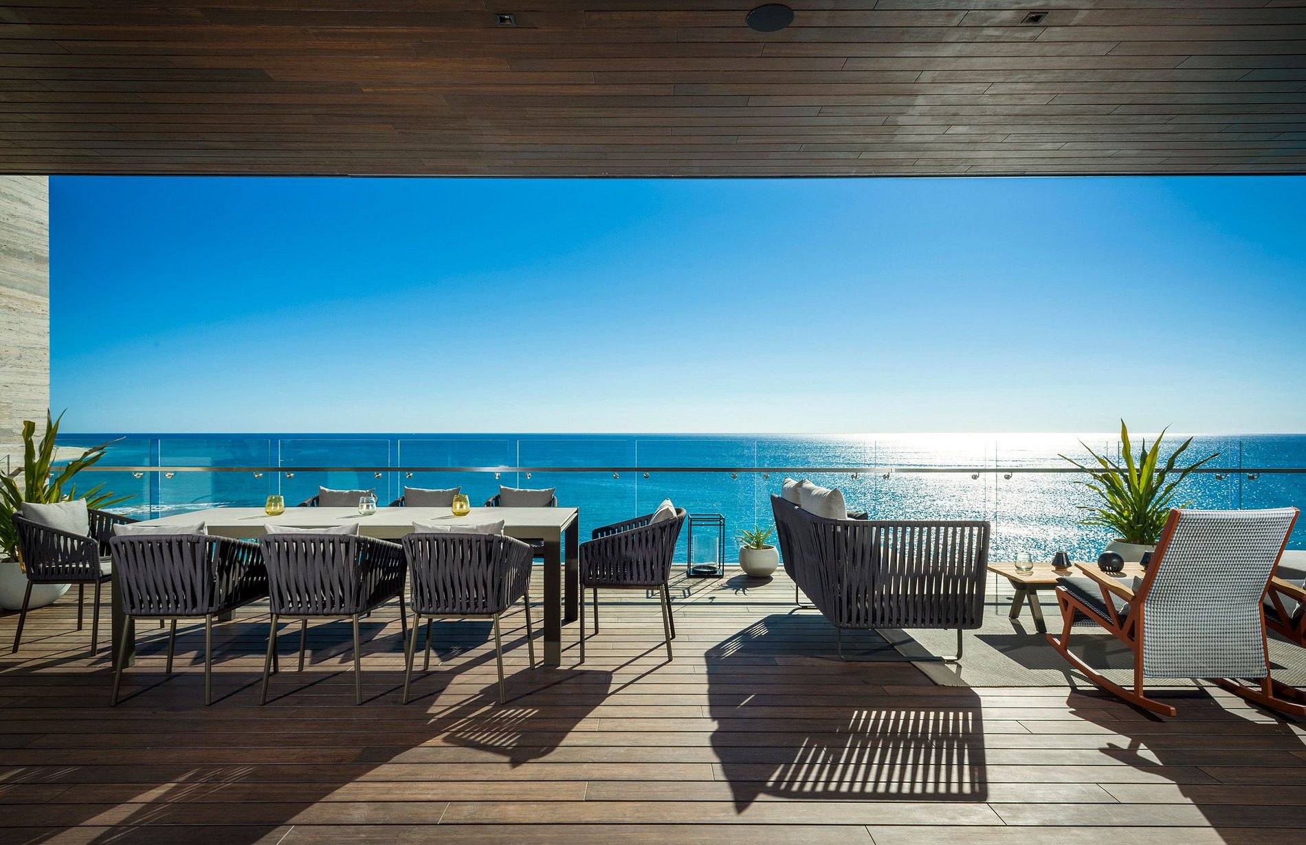 Détendez-vous et détendez-vous après une longue journée passée à explorer les magnifiques Los Cabos dans le coin salon, sur des coussins et des canapés moelleux. Vous trouverez un coin salon extérieur séparé sur la vaste terrasse. Ses balcons sont spacieux et garantissent des vues incroyables pendant la journée et, avec son éclairage tamisé, la nuit, se transforme en un véritable environnement propice à la détente. Détendez-vous ou prenez un bain de soleil dans les nombreux coins salons ou détendez-vous dans le bain à remous et admirez la vue imprenable sur l'océan.