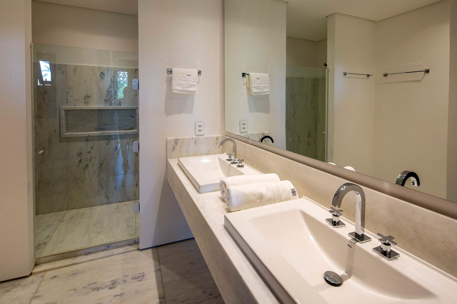 Il y a 5 suites confortables, 1 chambre d'employé et un total de 8 salles de bain. Toutes les suites sont joliment décorées, confortables et luxueusement aménagées. Il dispose de la climatisation séparée, de placards et d'un répéteur de signal wifi. La suite principale dispose de: lit king size, placard, réfrigérateur, Smart TV, salle de bain avec deux lavabos et deux douches.