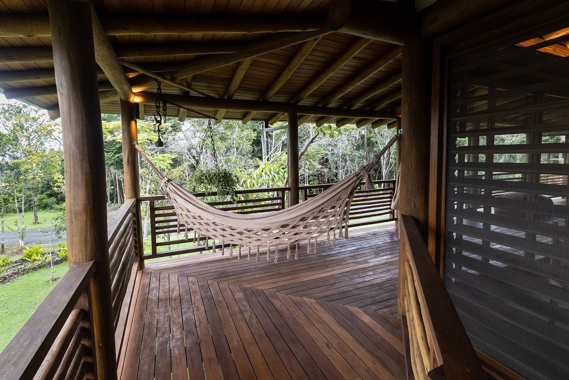 La villa est un véritable spectacle architectural. Elle allie modernité et luxe dans un style rustique et lumineux. Les chambres sont spacieuses, décorées avec goût et confortables. Elles bénéficient d'une ventilation et d'une lumière naturelles optimales, tout en profitant de magnifiques vues panoramiques. Le terrain de 6 hectare carrés est intégré à la forêt indigène.
