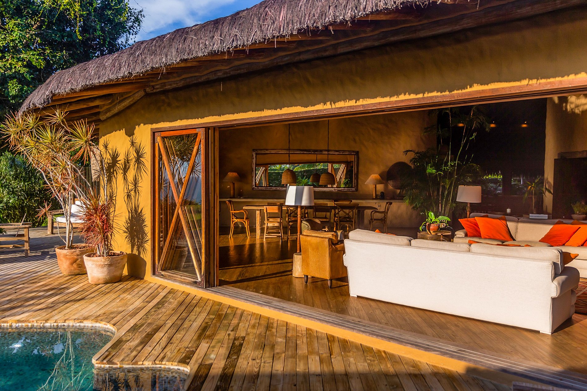 La villa rassemble toute l'atmosphère et l'essence bahianaise de Trancoso dans sa conception et sa décoration dans une harmonie infinie avec la nature.