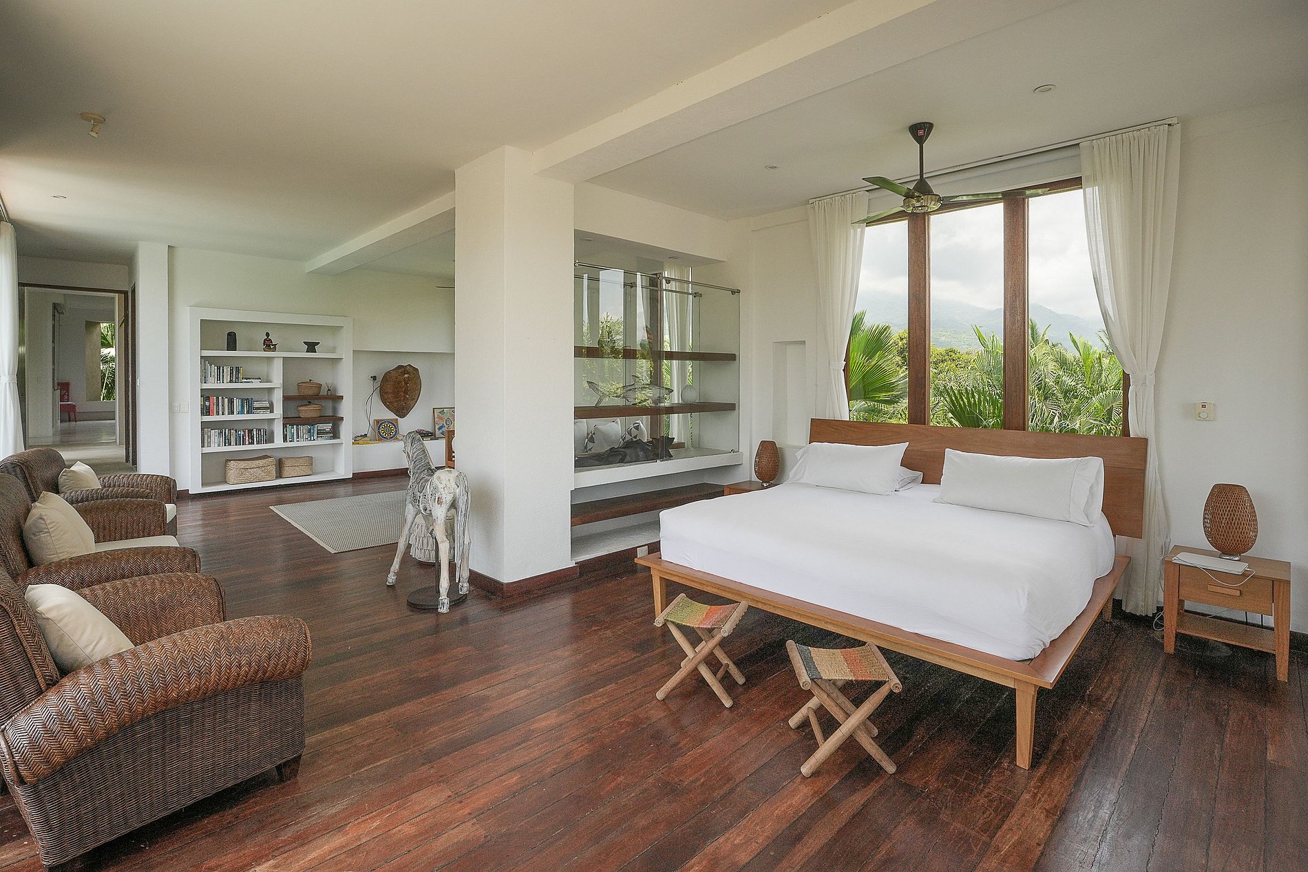 La villa dispose de cinq chambres spacieuses, chacune avec une salle de bain privée, un lit king-size et un lit simple supplémentaire. Chaque chambre est soigneusement aménagée avec un dressing, un minibar et un coffre-fort, ainsi qu’un coin salon confortable, garantissant intimité et bien-être. De grandes baies vitrées permettent à la lumière naturelle d’inonder l’espace, offrant une vue imprenable sur la mer des Caraïbes et les palmiers environnants.