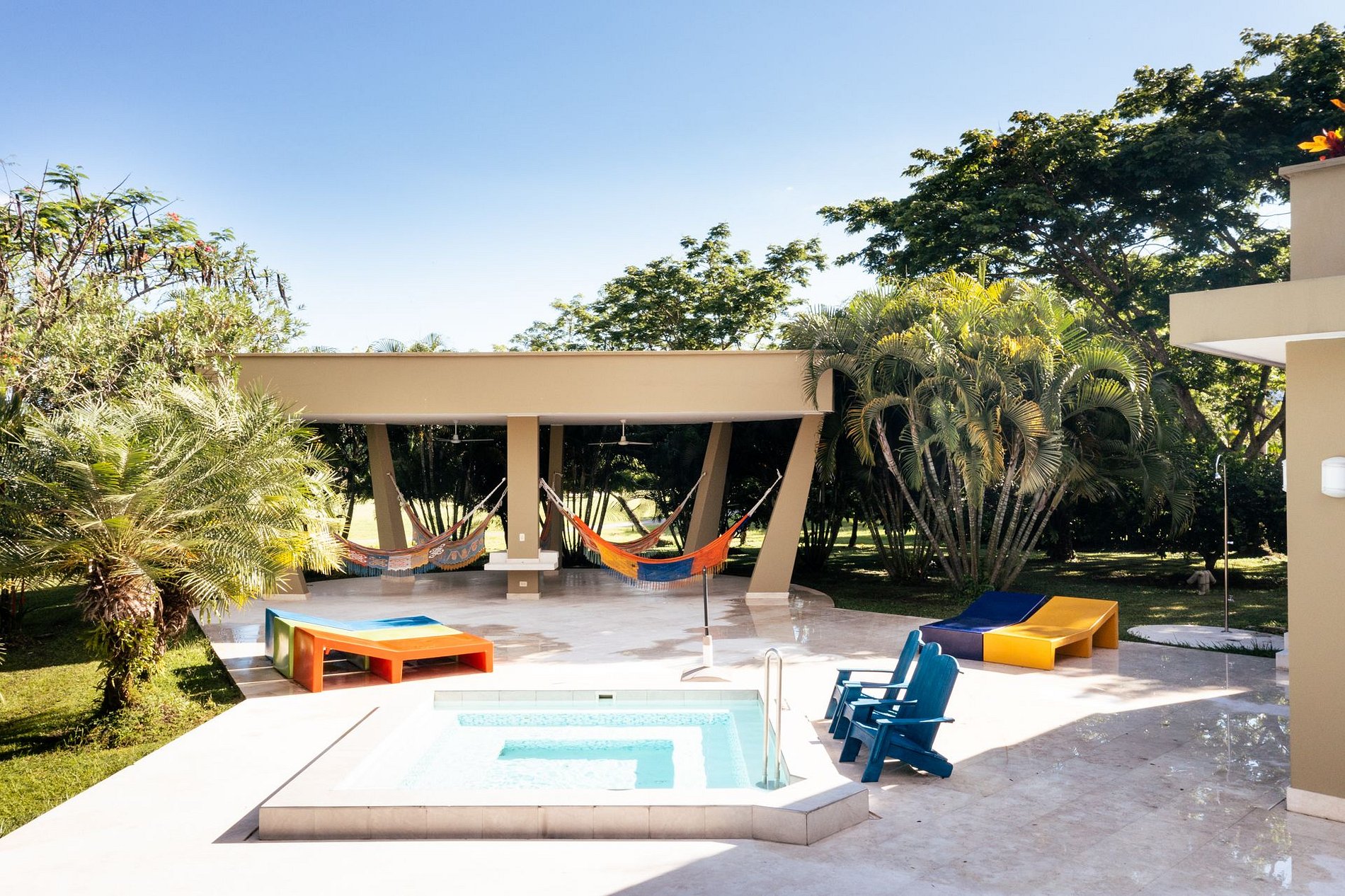 Dans cette maison spectaculaire, vous pouvez trouver tout le confort que vous souhaitez réactiver. De l'hébergement dans les chambres, aux espaces communs tels que hamacs, kiosques, piscine, jacuzzi et terrasses. Il dispose de cinq grandes pièces, d'un salon, d'une salle à manger, d'un BBQ, d'un Tempayaki et d'une cuisine entièrement équipée.