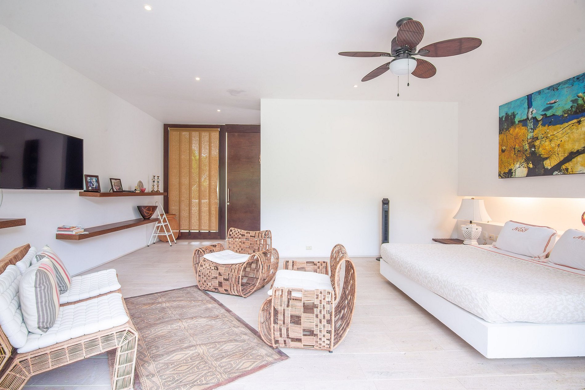 La maison est répartie sur deux niveaux, au premier vous trouverez les espaces sociaux tels que la piscine, avec vue sur la nature, barbecue, salon, salle à manger et cuisine avec portes en bambou, qui donnent à la propriété une identité tropicale. Elle dispose de 3 chambres, toutes avec salle de bain privée.